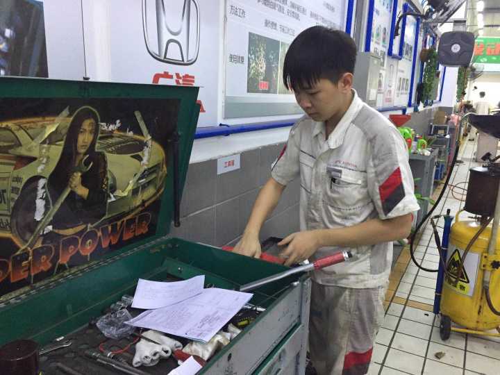 本次看望的毕业生是15级中德诺浩班的王杰、陈孝鹏,目前在海口中升宏达销售有限公司从事汽车维修岗位。