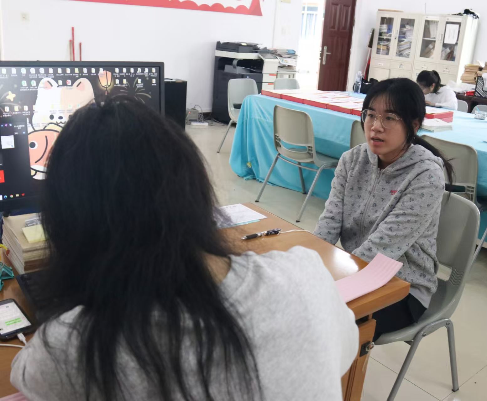 在谈话过程中,代晓明老师针对入党申请人的入党动机、个人成长经历、思想动态、对党的基本知识的了解程度以及未来如何更好地向党组织靠拢等方面进行了详细询问,引导他们深入思考和自我剖析。入党申请人则以实事求是的态度逐一回答,展现出对党组织的热爱和向往,同时也表达了对自身不足的认识及改进的决心。谈话结束后,入党申请人纷纷表示今后要加强党的理论学习,努力提升自己的专业能力和综合素质,以实际行动向党组织靠拢。