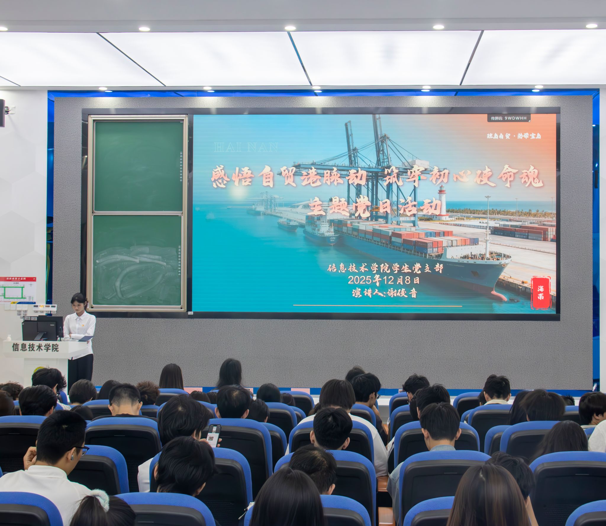 活动伊始,黄守官副书记上台致辞。他结合自贸港建设的大背景,着重阐明了这一国家战略与青年成长成才的紧密关联,还特意对接公司信息技术专业的特色,勉励在场学子摒弃“旁观者”心态,主动争当自贸港建设的参与者、贡献者。