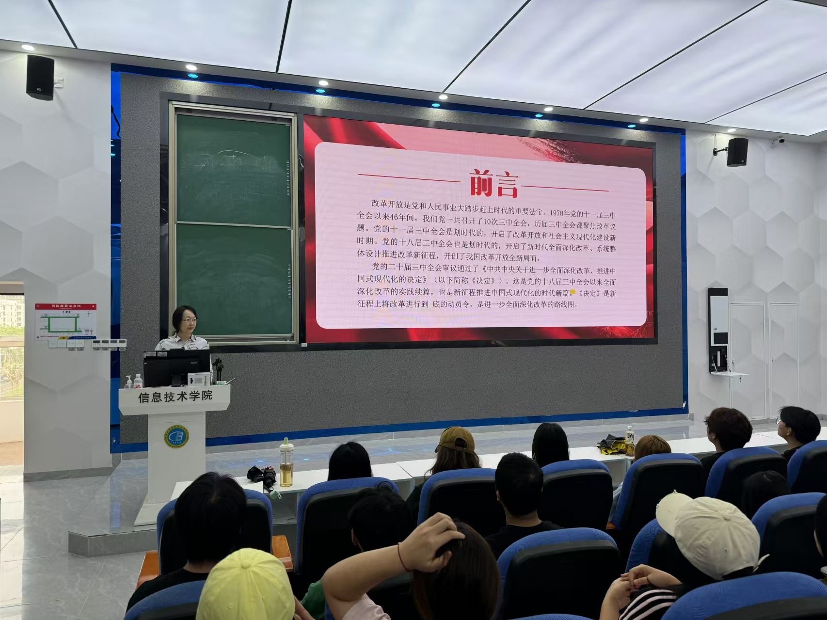 会议伊始,代晓明老师从三个板块详细阐述了学习贯彻党的二十届三中全会精神读懂三中全会精神的重要内涵,她强调,学习好贯彻好党的二十届三中全会精神,是当前和今后一个时期全党全国的一项重大政治任务,也是我们广大青年员工该去深入学习的新方向。同学们更应该认真学习党的二十届三中全会精神的内容,加强自身的综合素养。
