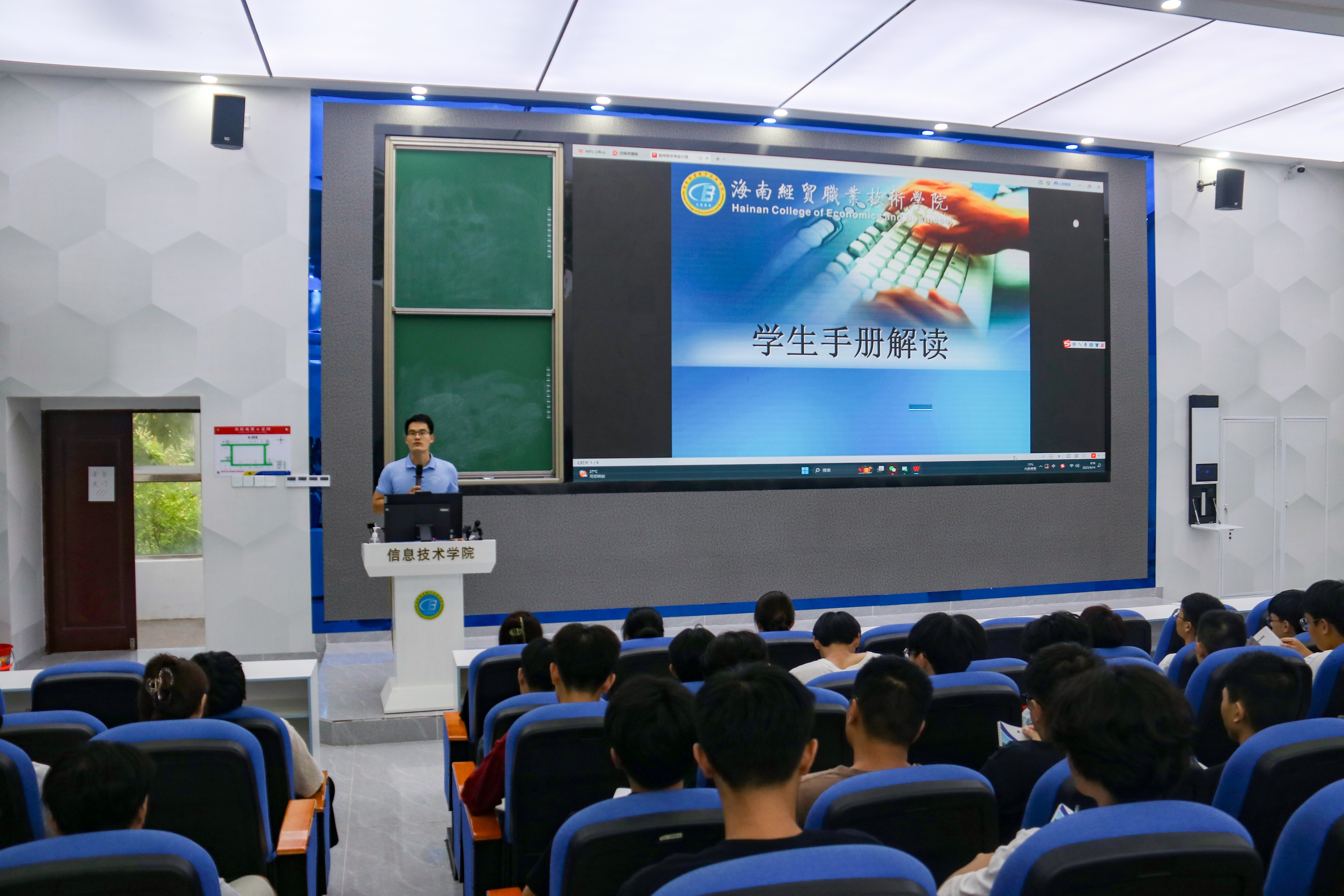 会议伊始,唐老师为同学们进行员工手册解读,以《员工手册》内容为基础,涵盖员工权利与义务、奖助学金评定、违纪处分、安全教育等内容,并通过实际案例叮嘱同学们要提高自我保护意识和能力,为接下来的学习和生活奠定良好基础。