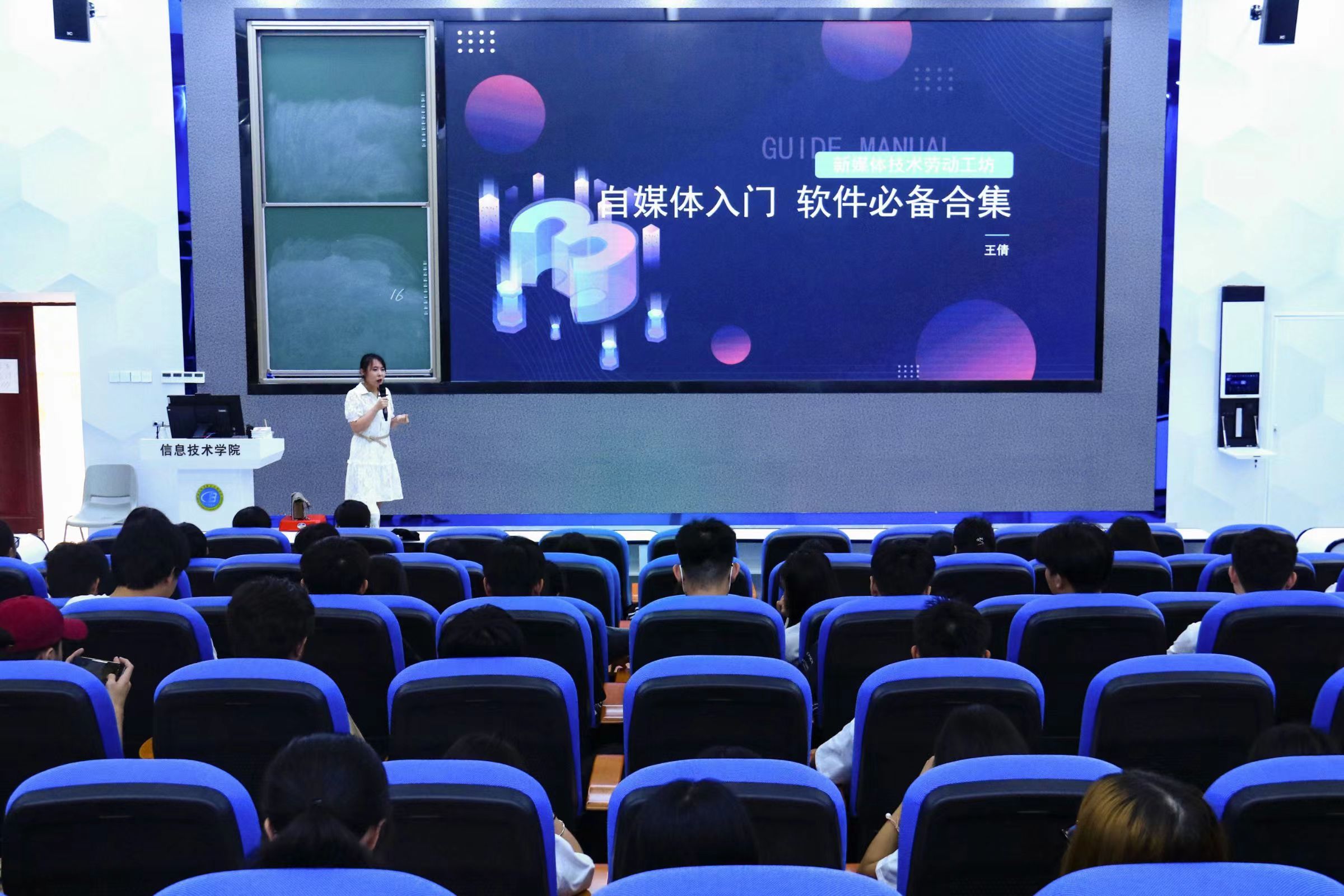 4月18日下午,“新媒体技术劳动工坊第五期公益讲座”在4-215成功举办。本次讲座由海南英立大数据服务有限公司项目经理王倩老师担任主讲人,来自全校各个专业共计220余名同学共同参与此次讲座。