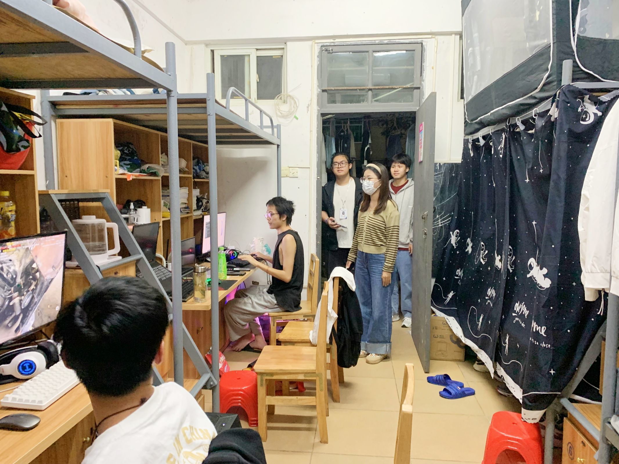 新学期伊始,为排查公司宿舍的安全隐患,及时了解员工的思想动态、健康情况、生活需求及宿舍卫生状况。2023年2月20日晚上七点,公司开展新学期宿舍检查活动。在公司党总支副书记黄守官的带领下,学工办负责人唐图,全体辅导员以及团学干部们对各个宿舍进行了走访。
