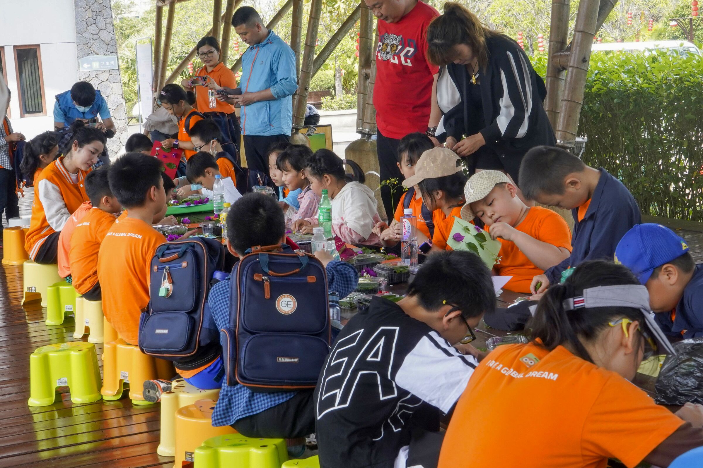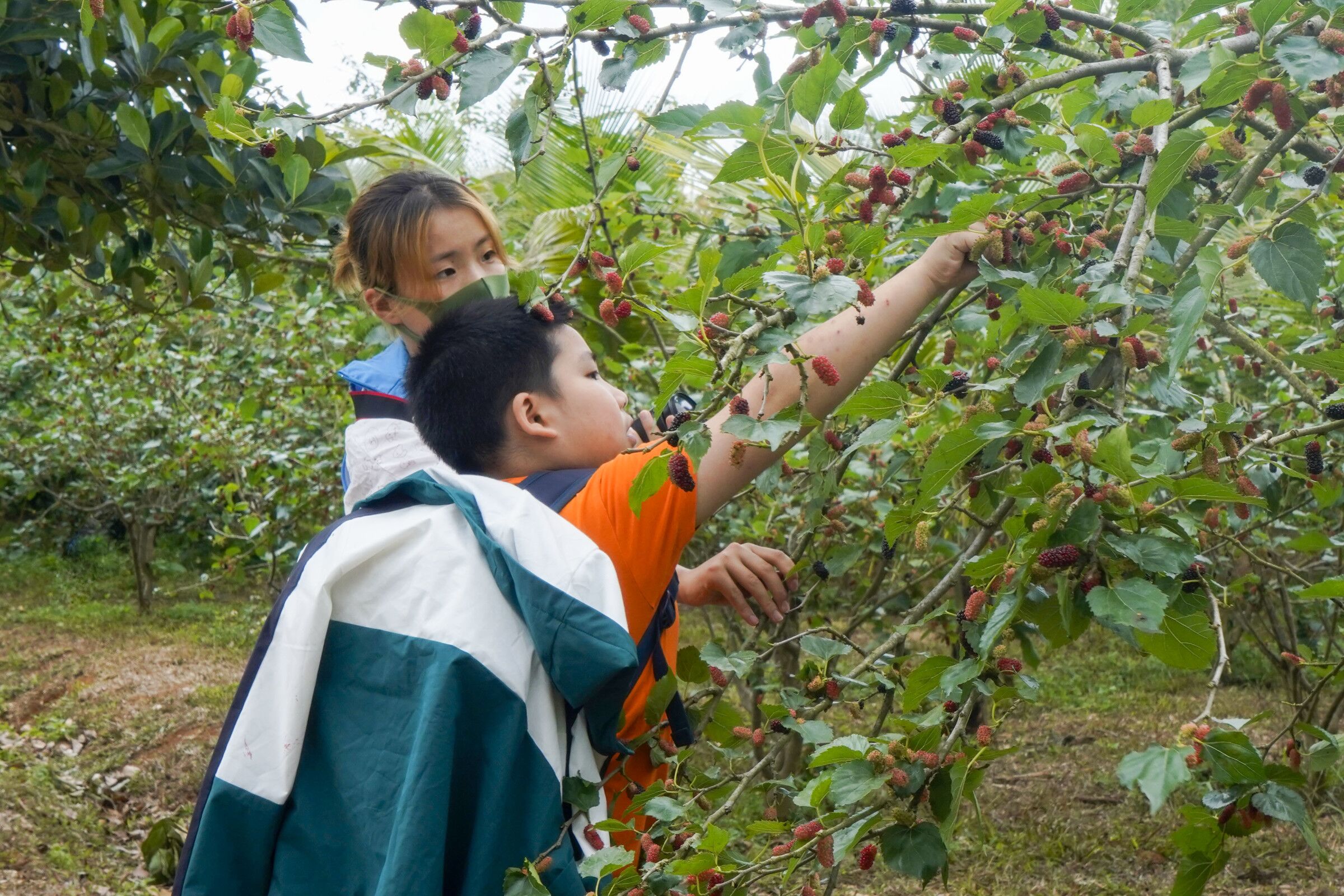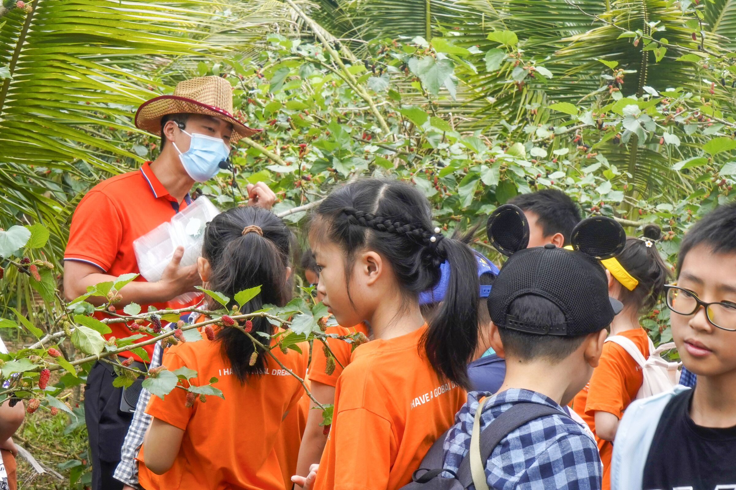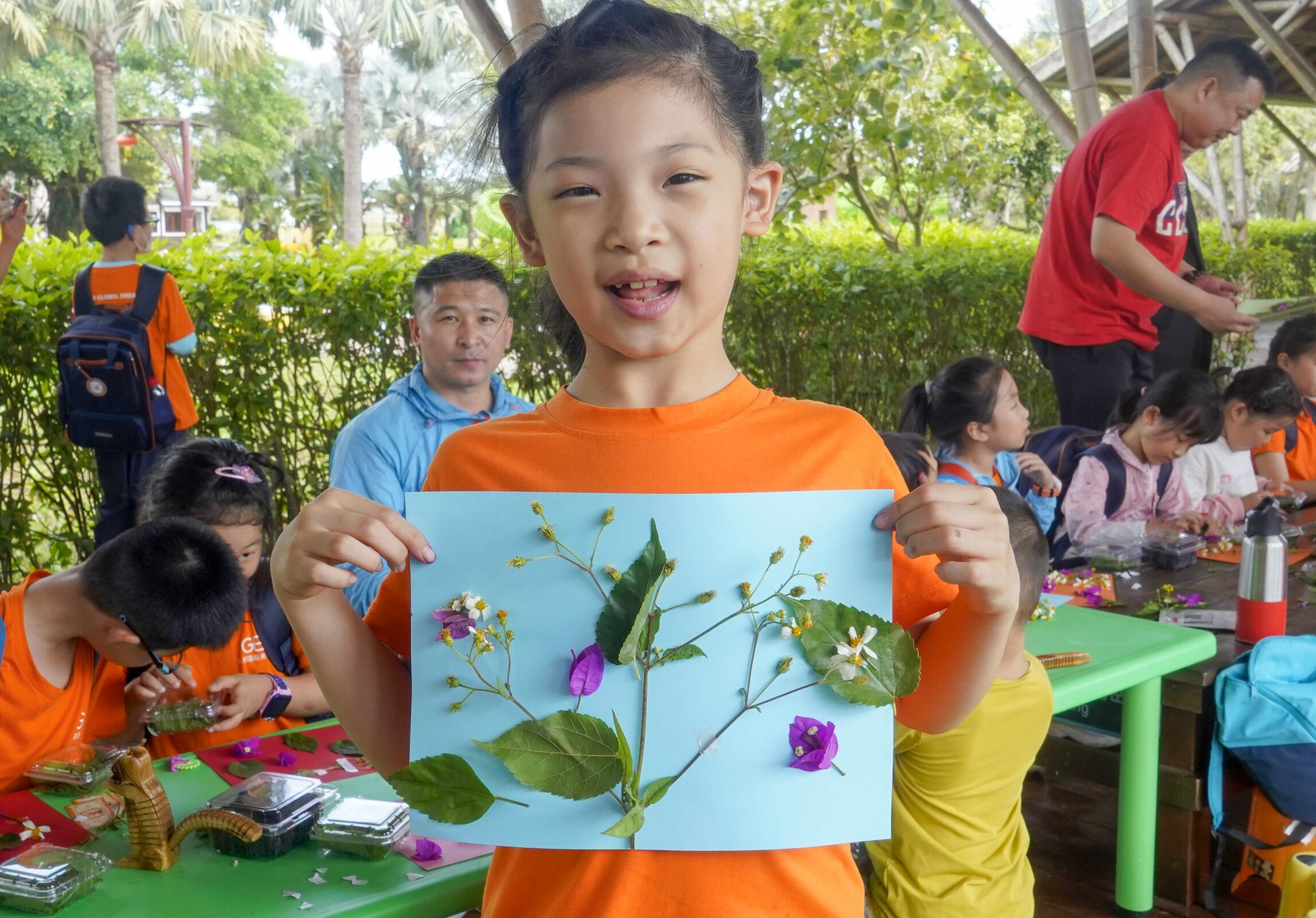 活动中,志愿者和老师们一同开展“趣味英语”课堂,通过小游戏的形式展开教学,增强了英语学习的趣味性,营造了积极、活跃的氛围。随后,在果地,志愿者们积极帮助小朋友们采摘桑葚,并和小朋友们讲解了桑葚的功效与作用,被小朋友们亲切地称为“蓝衣哥哥”和“蓝衣姐姐”,大家的欢声笑语感染了整个公园。活动的最后,心灵手巧的志愿者们为小朋友们制作的手工作品出谋划策,制作花瓣,从花朵样色到包装配饰,相互配合,共同创多作个精美作品,作品充满了小朋友们的童真,又承载了服务队员的志愿爱心。