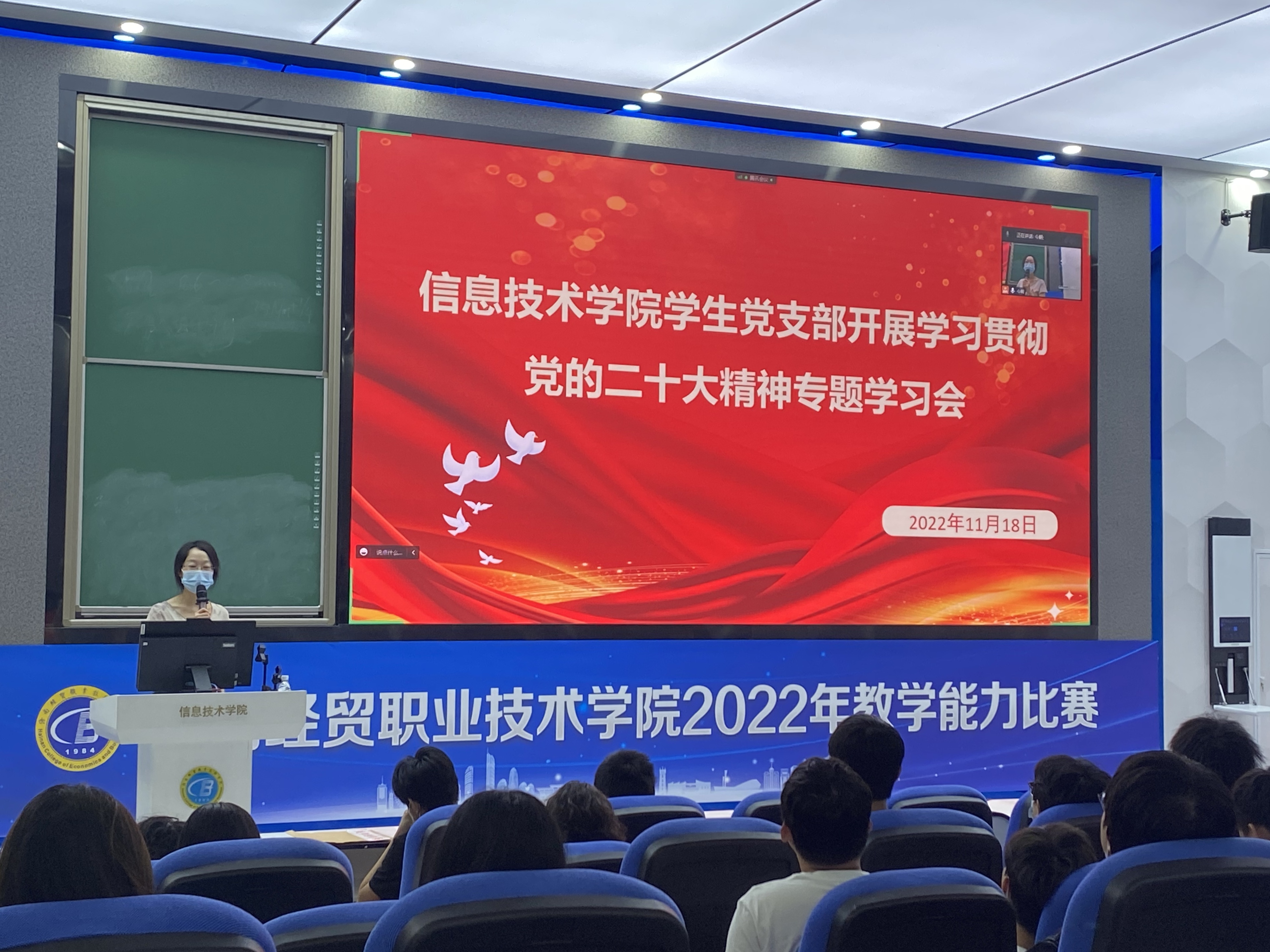11月18日上午,bevitor伟德员工党支部在4-215多功能厅组织开展学习贯彻党的二十大精神专题学习会,党支部书记代晓明向公司入党申请人宣讲党的二十大精神。