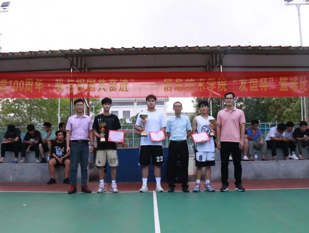 在闭幕式上,麦书记、梁老师和唐老师分别给获得本次“献礼建党100周年,我与祖国共奋进”bevitor伟德“友谊杯”篮球赛的冠军、亚军和季军代表队颁奖。