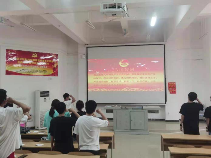 接下来,20级数字媒体应用技术2班的各位团员上台自我介绍,讲述自己加入共青团的经历。