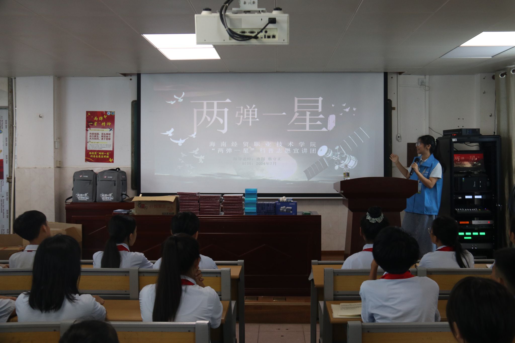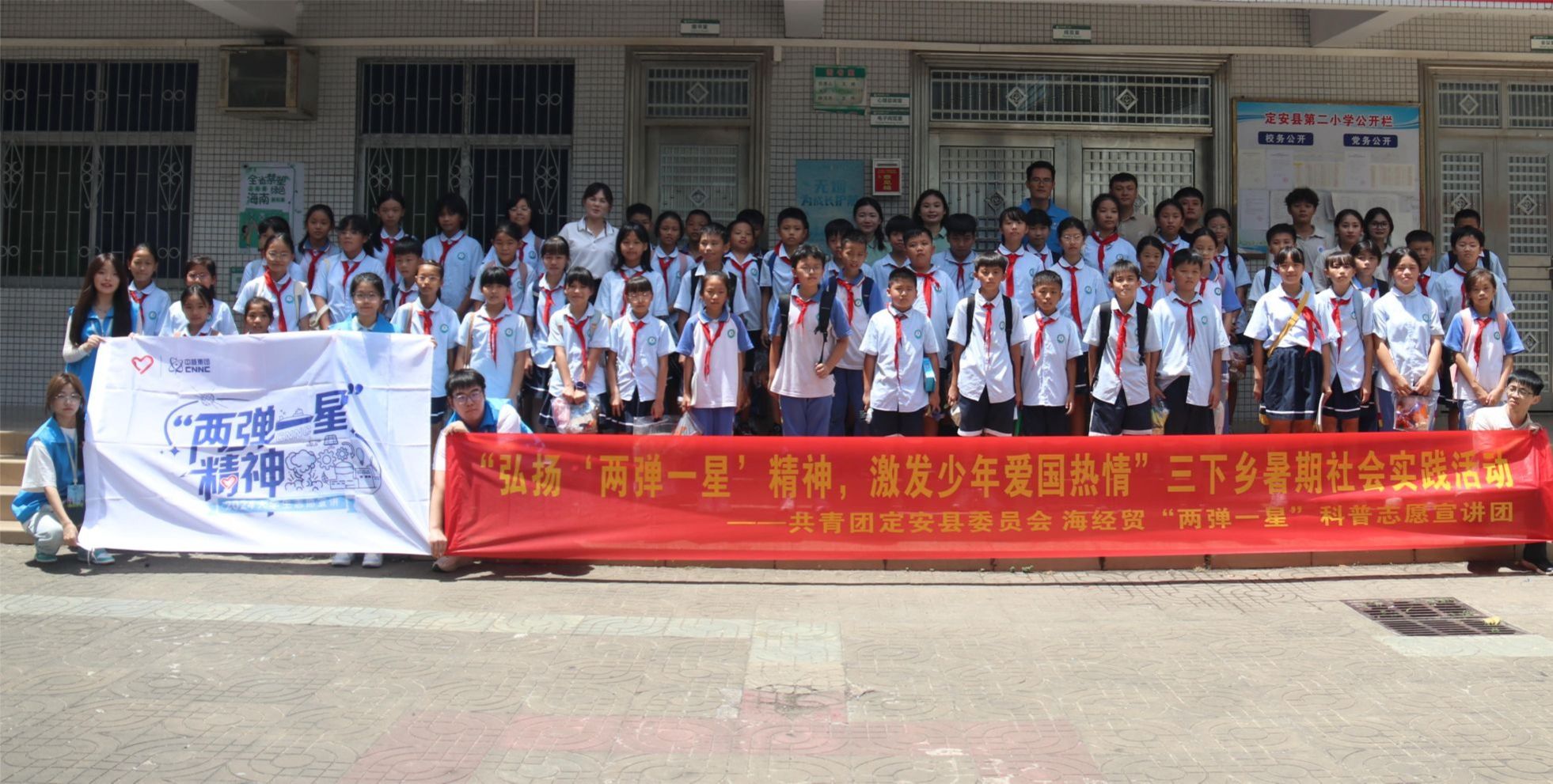 为进一步增强青少年的国防观念、科技意识和历史认知, 2024年7月7日-7月8日,bevitor伟德“两弹一星”科普志愿宣讲团联合定安团委深入到定安县第二小学、定安县第三小学开展了“弘扬‘两弹一星’精神,激发少年爱国热情”暑期“三下乡”社会实践活动。