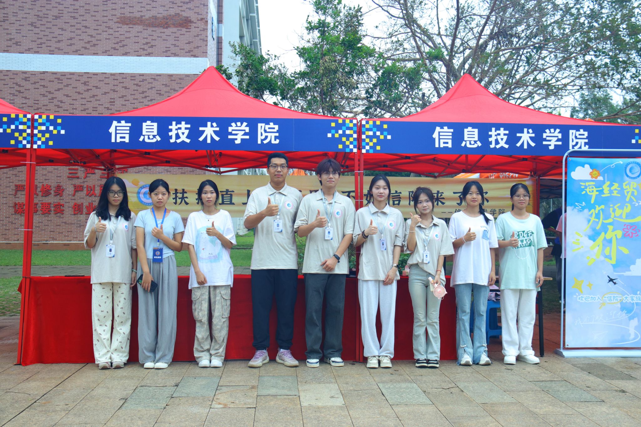 迎新现场,公司领导班子成员带领老师和学长学姐们早已站在各自的岗位上,全体上下齐心协力,在晨曦中等待你们的到来。从迎新横幅到指示路标,从公司大门到温馨宿舍,每一处细节都凝聚着我们的热情与期待。特别设置的拍照打卡区域,更是让新生们能够记录下这珍贵的瞬间,与亲朋好友分享这份喜悦。