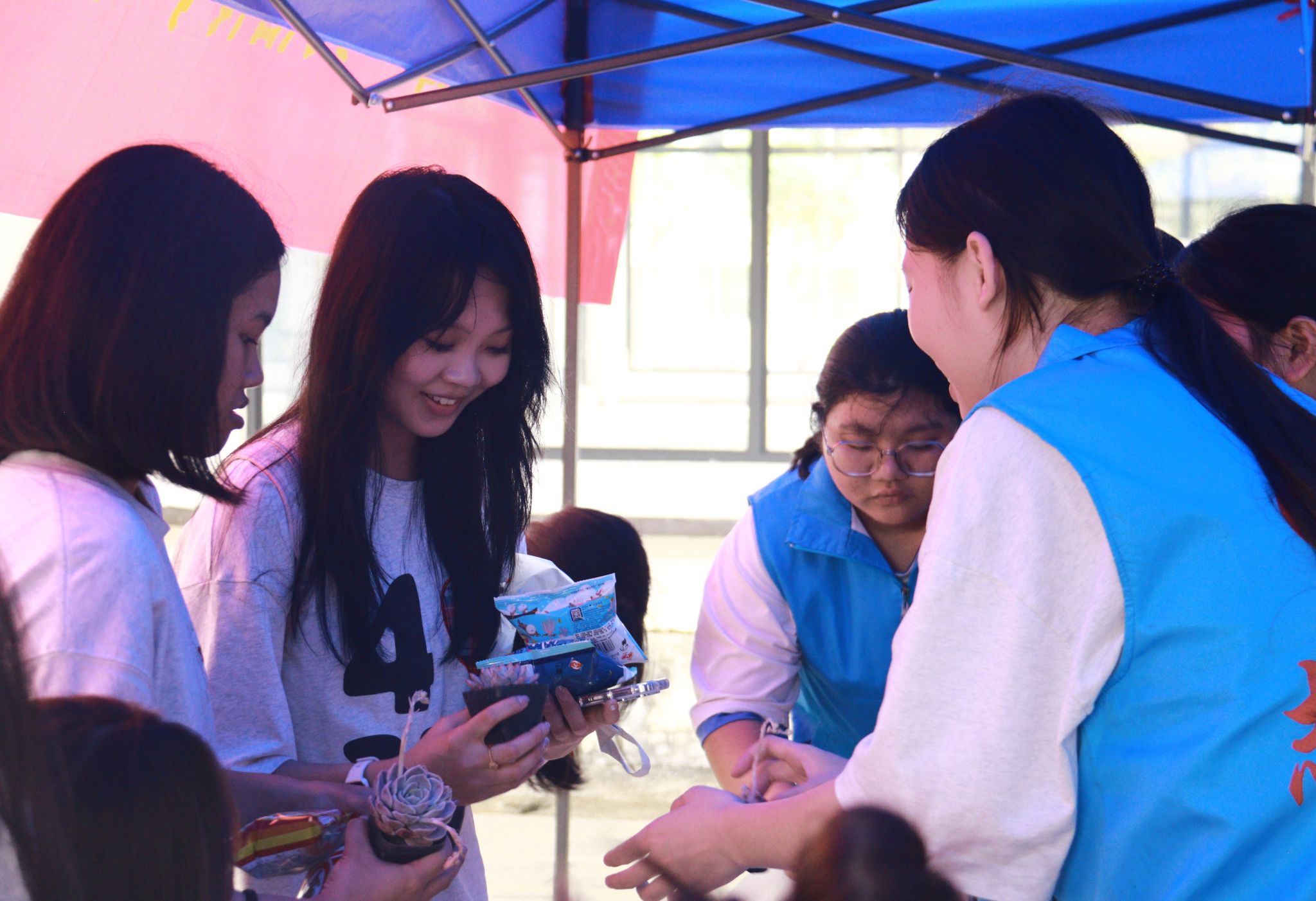 活动现场,同学们纷纷带着自己的闲置物品前来参与旧物交换。他们用自己闲置的旧书本、衣物和塑料瓶等,换来了清新可爱的多肉植物和美味的小零食。这一交换过程,不仅是对闲置物品的一次重新赋值,更是同学们对雷锋精神“勤俭节约、无私奉献”的深刻践行。通过实际行动,他们展现了新时代青年乐于助人、勇于担当的精神风貌。