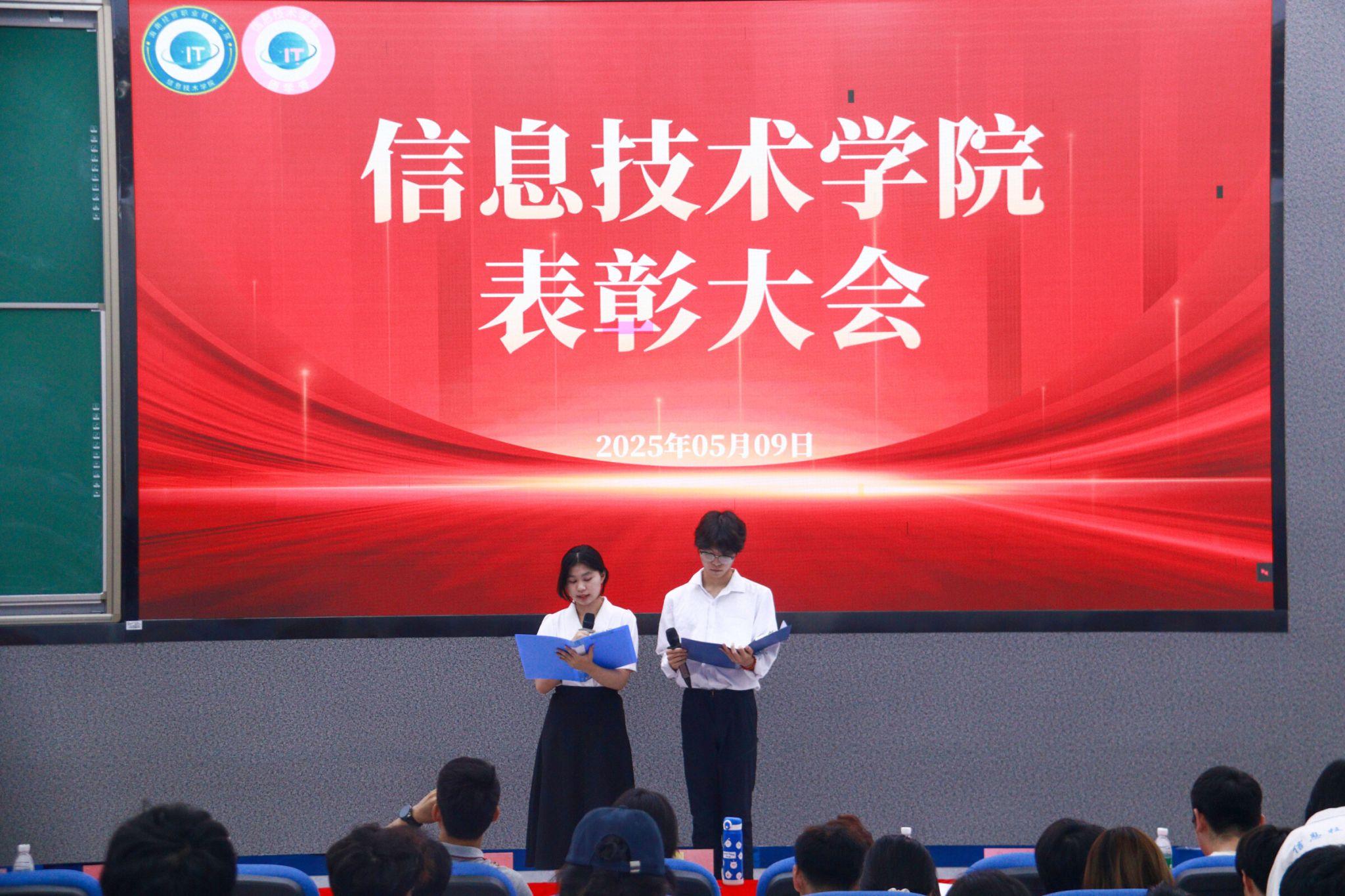 最后由蔡守正老师和吴佳华老师对本次表彰大会进行总结讲话。蔡守正老师首先对获奖的同学表示祝贺,并对会议期间各部门汇报的工作进展给予了充分肯定,她指出了近期团学工作中存在的问题。随后,吴佳华老师也指出了目前工作中存在的一些细微但不容忽视的问题,更是向我们提出一些建议,同时,向同学们介绍自己,最后他预祝团学工作能够朝着更有序、更高效的方向发展。