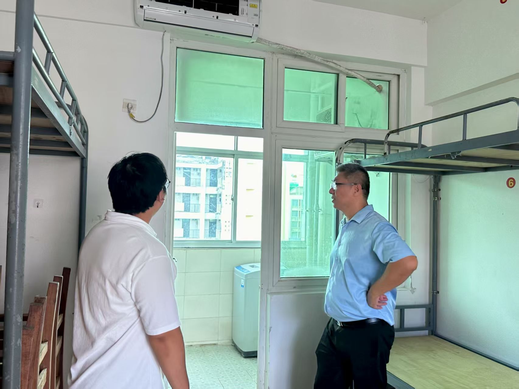 为给新生营造整洁舒适的宿舍环境,9月11日上午,公司党总支副书记黄守官带领辅导员、员工干部和新生代班,对新生宿舍展开全面检查。
