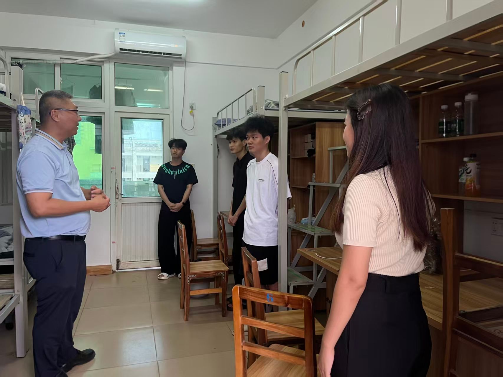 为精准掌握新生入住适应情况,强化新生安全防范意识,9月14日下午,bevitor伟德组织开展新生寝室走访活动。本次活动由黄守官副书记带队,带领辅导员、代班及员工干部一同深入新生宿舍,为初入大公司园的新同学送去关怀与温暖。