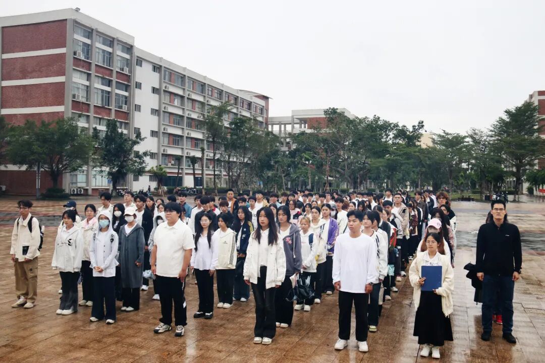 随着仪式的开始,全场师生肃立,目光紧随即将升起的五星红旗。在雄壮激昂的国歌声中,国旗缓缓升起,迎风飘扬,全体师生怀着崇敬的心情向国旗行注目礼,表达对祖国的无限热爱与崇高敬意。