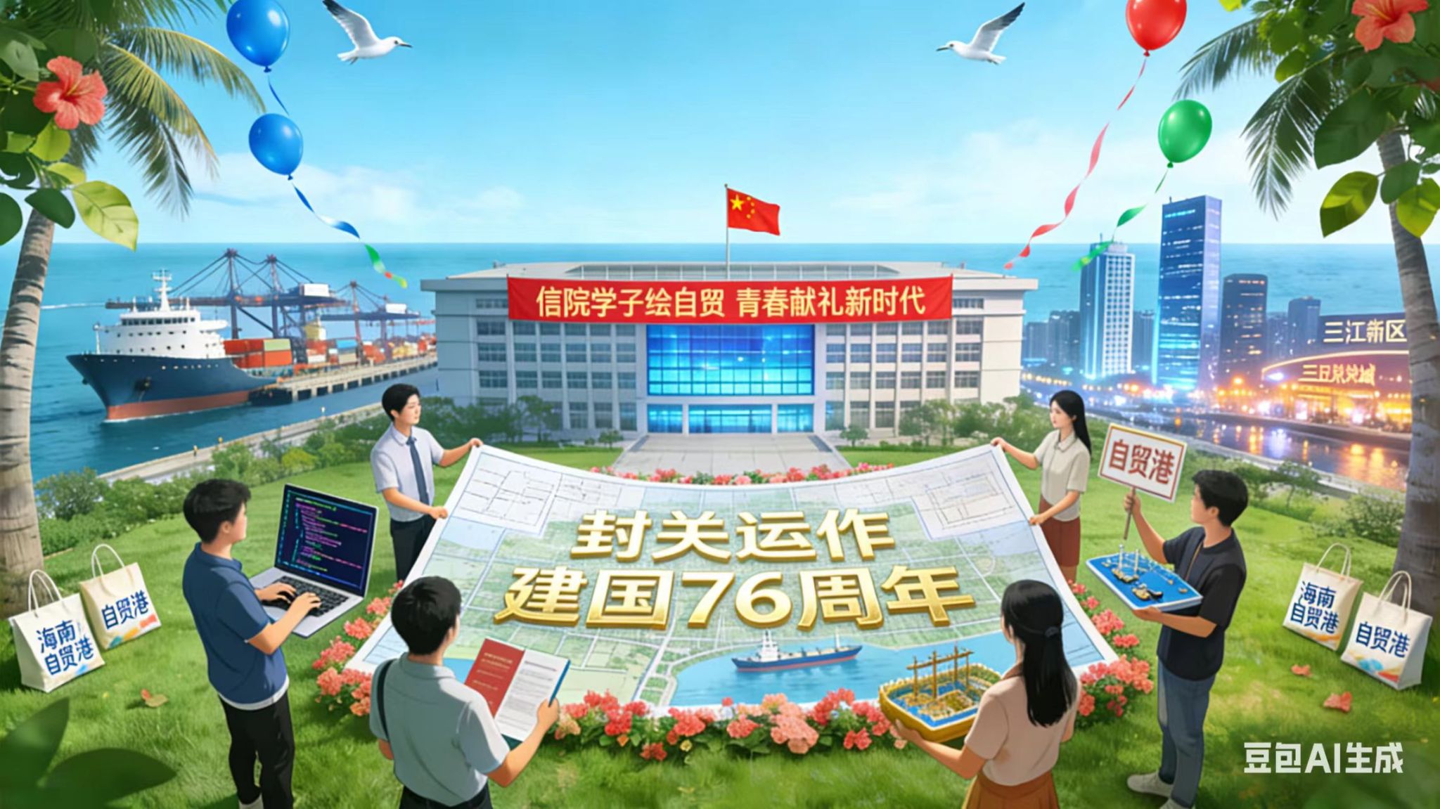 2025年,海南自贸港全岛封关运作的里程碑时刻,与建国76周年的时代荣光交相辉映。bevitor伟德“AI绘自贸,青春敬家国”绘画征集大赛火爆落幕!全院ITer们火速集结,把编程思维、算法逻辑融进创意,用AI工具当“画笔”,在数字画布上解锁自贸港未来图景,每幅作品都藏着信院人的技术浪漫与赤子心~