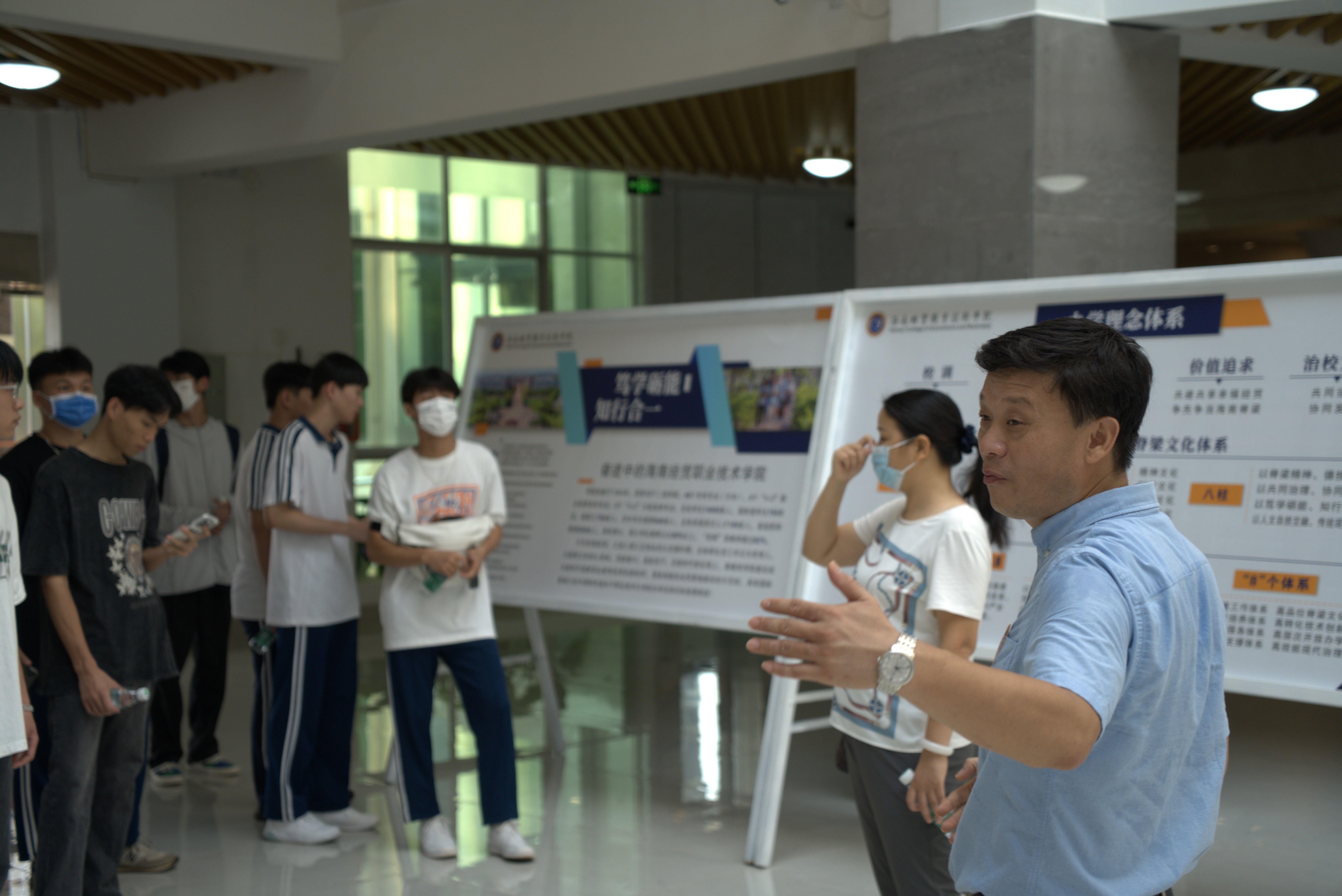 在bevitor伟德单继周副经理的指引下,大家走进校园,来到图书馆,驻足观看公司关于办学理念体系、中国特色高水平高职公司建设主要标志性成果、多元课程的介绍,全方位、多角度感受公司在团队、课程建设、体艺特色等方面的教育成果。紧接着,大家游览体育馆、操场、实训室等多个场地,随后,单继周副经理在4-207为大家介绍了bevitor伟德的人才培养、专业设置、教学成果等方面,大家有了更深的了解。