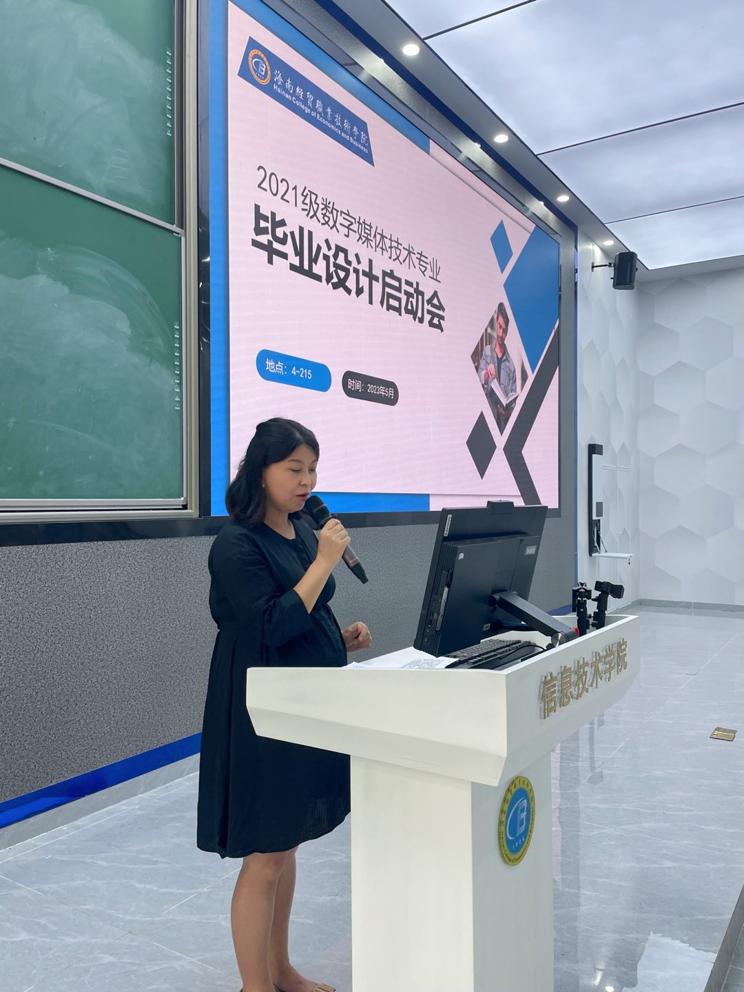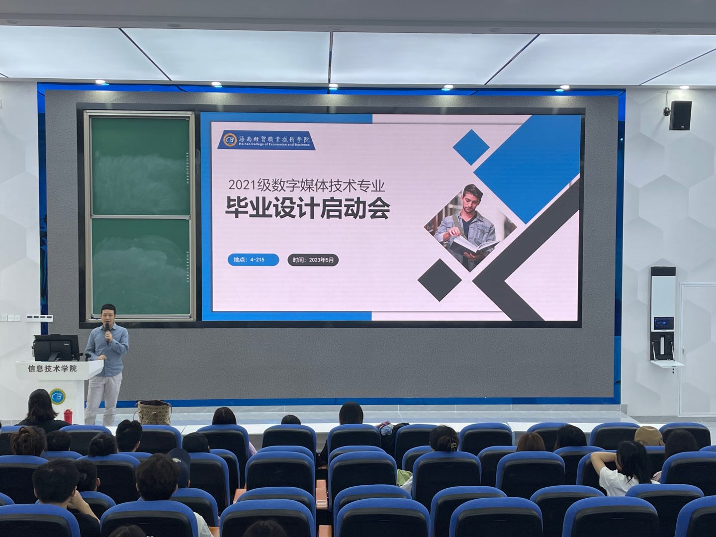 启动会伊始,康东副经理为同学们做动员讲话,对即将实习的同学们表示鼓励和支持,并祝愿同学们坚持不懈、不忘初心。紧接着,张又文老师为同学们介绍本次毕业设计合作企业——芳园国际艺术村概况,并对所负责的毕业设计主题项目“荷花印记”品牌设计宣传的要求进行解读。为了让同学们进一步了解品牌,会议邀请了2015级毕业生黄若龙同学(现任Nice文化公司市场总监)为同学们讲解品牌的故事,并分享了毕业这些年的成长故事。随后,由王凡帆老师解读毕业设计主题项目“和你相约”拍摄要求及注意事项,董阁老师解读毕业设计主题项目“节日主题互动-H5交互动画”制作要求;林珍老师解读毕业设计主题项目“研学动画-二维动画”展现园区研学活动宣传及流程要求;马清老师解读毕业设计主题项目“短视频创作与运营策划”的制作要求,并做了总结发言,此次活动使同学们对毕业设计内容及要求有了更清晰的认识,也使自己的毕业设计方向选择更加明晰,会后同学们纷纷表示受益匪浅,收获满满。