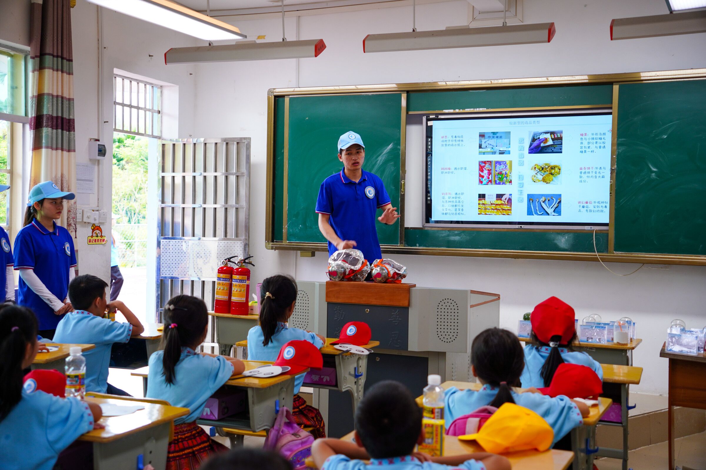 初到南圣镇,王智娴和唐图老师向公司的老师和同学们了解了平时的学习和生活情况,宣讲队员迅速与同学们融为一体。符广磊同学作为本次禁毒主题的主讲人,从“什么是毒品”、“什么是吸毒”、“毒品的危害”、“如何防止吸毒”四个方面系统、详尽地向同学们讲解禁毒相关知识。讲解过程中,除了图片、视频、PPT等传统的展示模式,禁毒宣讲服务队还为同学们带来了毒品实物模型,通过虚实结合使得同学们对毒品相关知识印象深刻。讲解完毕后,宣讲队员与同学们开展问答互动,再次加深了同学们对禁毒知识的印象。