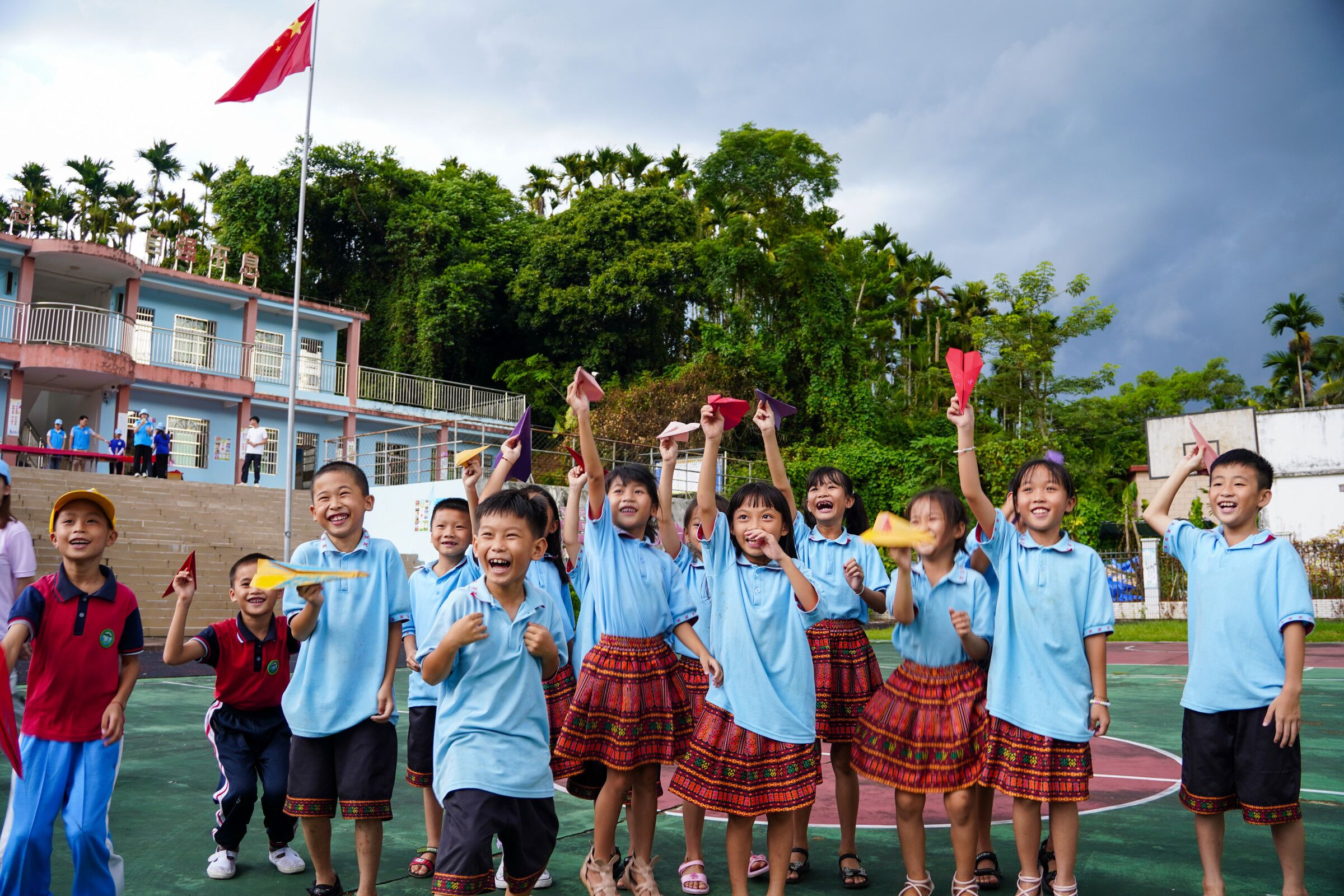 紧接着支教服务团的同学还给孩子们发了卡纸,让孩子们在上面写上自己的梦想折成纸飞机,并将折好的纸飞机扬出去,放飞梦想。最后,为了帮助孩子们更好的学习和了解垃圾分类,支教服务团为小员工们提供了垃圾桶实物模型,由孩子们亲手搭建属于自己的模型,寓教于乐,更好的强化了孩子们环境保护科学垃圾分类的相关知识。