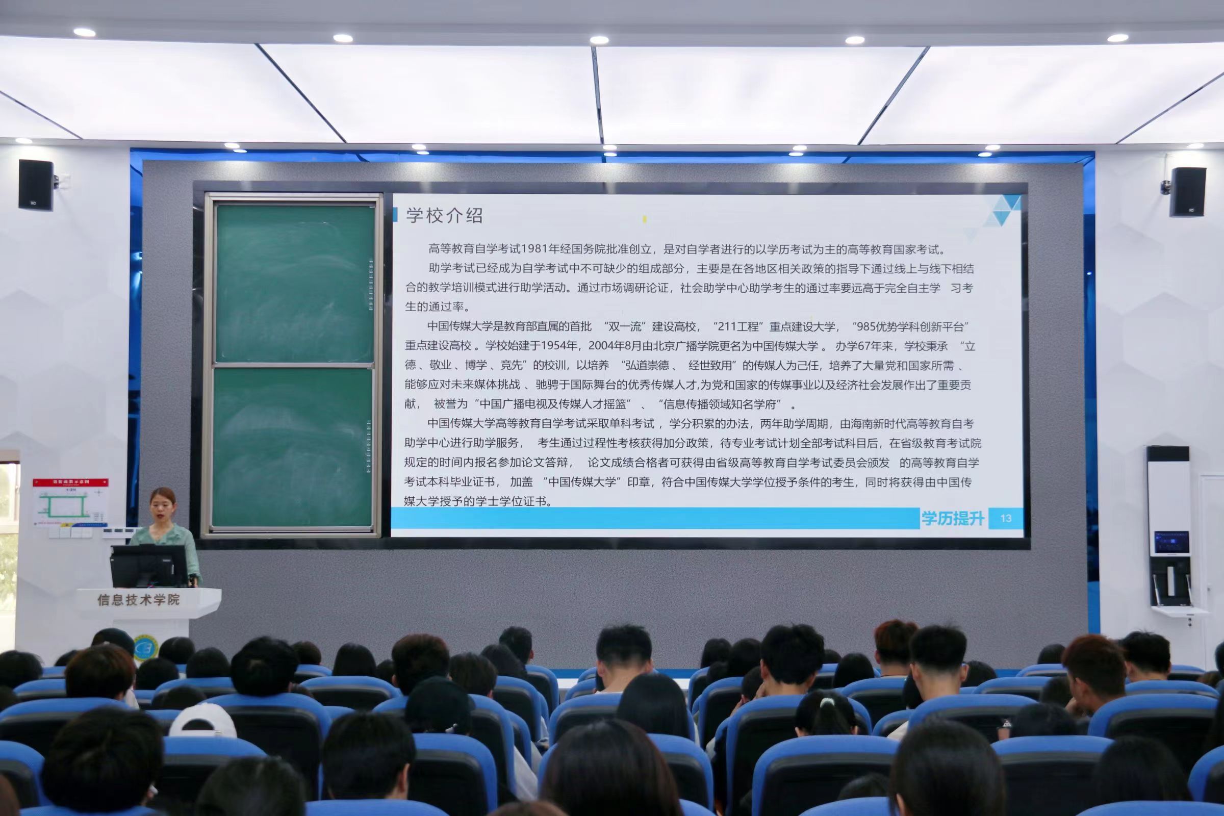 会上,中国传媒大学负责老师从提升学历层次的重要性与必要性、公司介绍、专业介绍等几方面进行了全面的介绍,并详细讲解了2024年海南省自学考试(专接本)报名工作。随后,郭老师针对员工关心的问题进行解答,内容生动直观,有很强的指导性,讲座现场气氛活跃,师生互动沟通。宣讲最后,负责老师还贴心准备了微信群,以便后续有问题能够随时联系并解决。