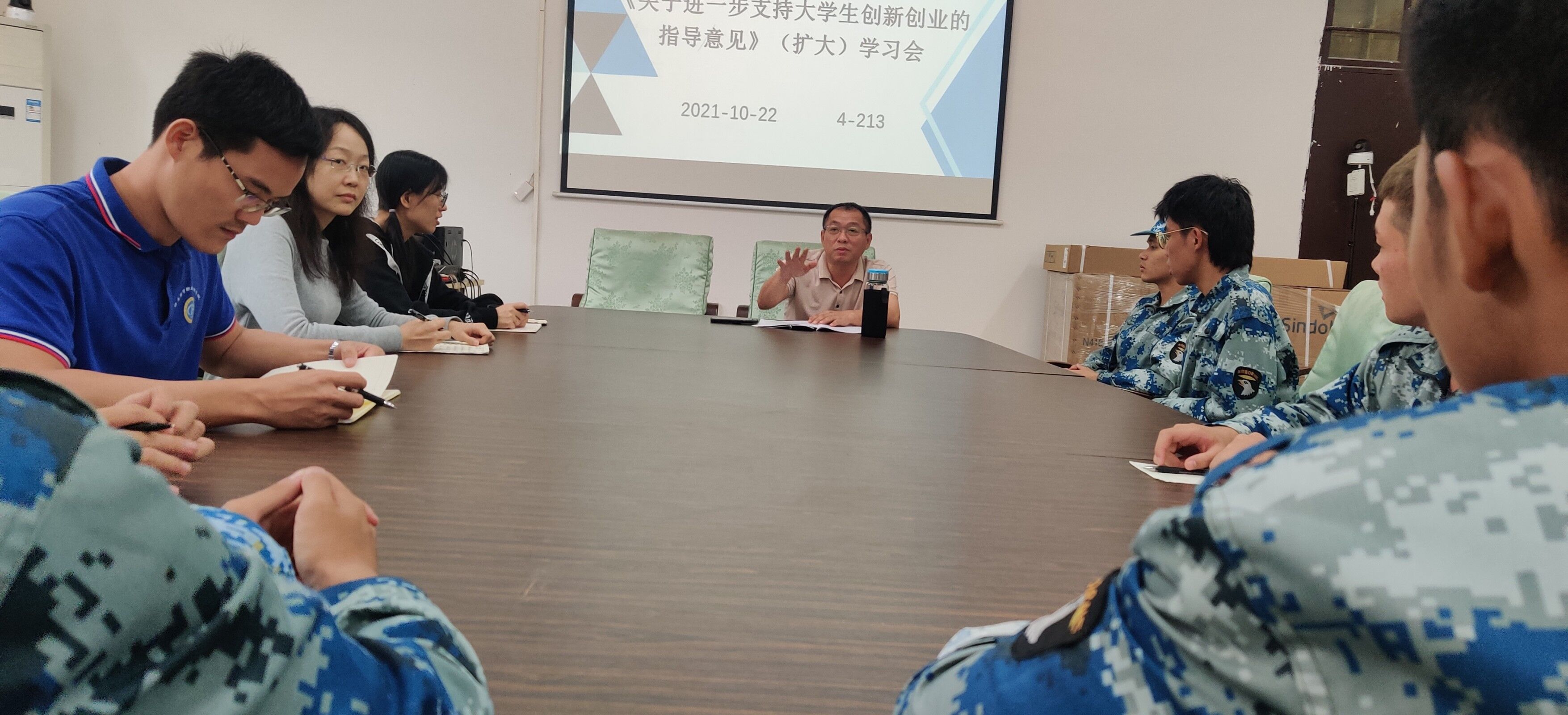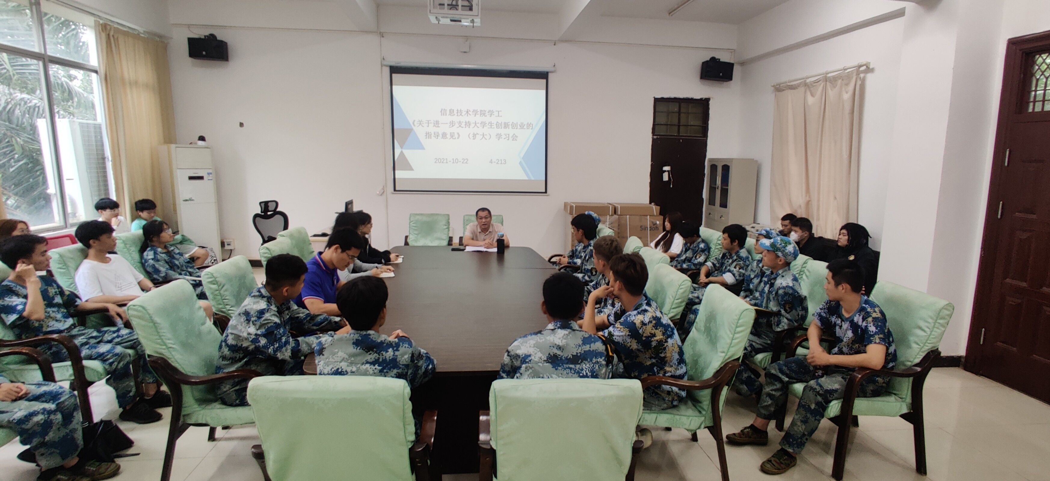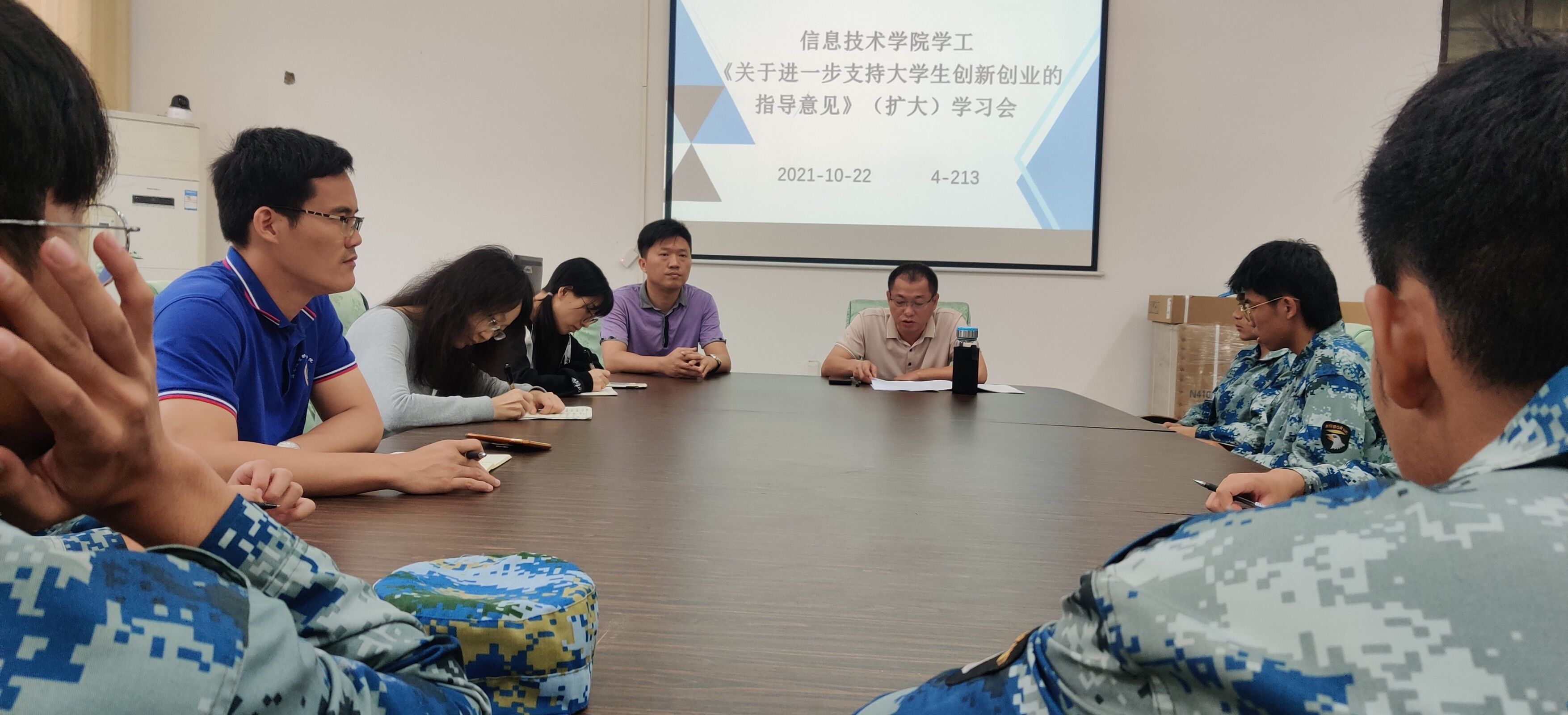 2021年10月22日中午,bevitor伟德在会议室4-213召开了《关于进一步支持老员工创新创业的指导意见》(扩大)学习会,本次会议由孙金书记主持,bevitor伟德全体辅导员、2020级和2021级全体班长到场参加。