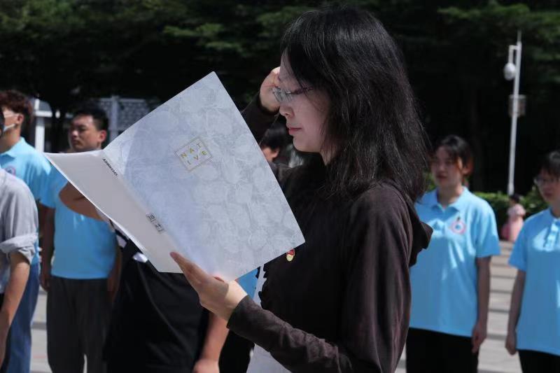 祭奠仪式由代晓明老师主持。首先,向革命烈士纪念碑敬献花束,全体师生集体默哀,沉痛悼念为国捐躯的烈士和所有为中华民族解放事业做出贡献的革命先辈。代晓明老师带领全体党员、预备党员宣誓,重温入党誓词,非党员同志默念学习入党誓词。最后,全体人员绕纪念碑一周,表达对先烈的无比敬仰和缅怀之情。