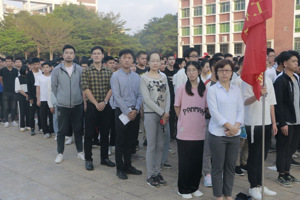 2019年11月25日(院青年媒体中心)讯,11月25日早上7:20分,工程技术公司于经贸广场举行升旗仪式。出席本次升旗仪式的有:工程技术公司党总支副书记陈亚芳、学工办主任梁其钰、团学负责人周恺、17级辅导员唐图、18级辅导员代晓明、18级辅导员郭蓉佳、19级辅导员鄢兴祥以及公司全体员工。
