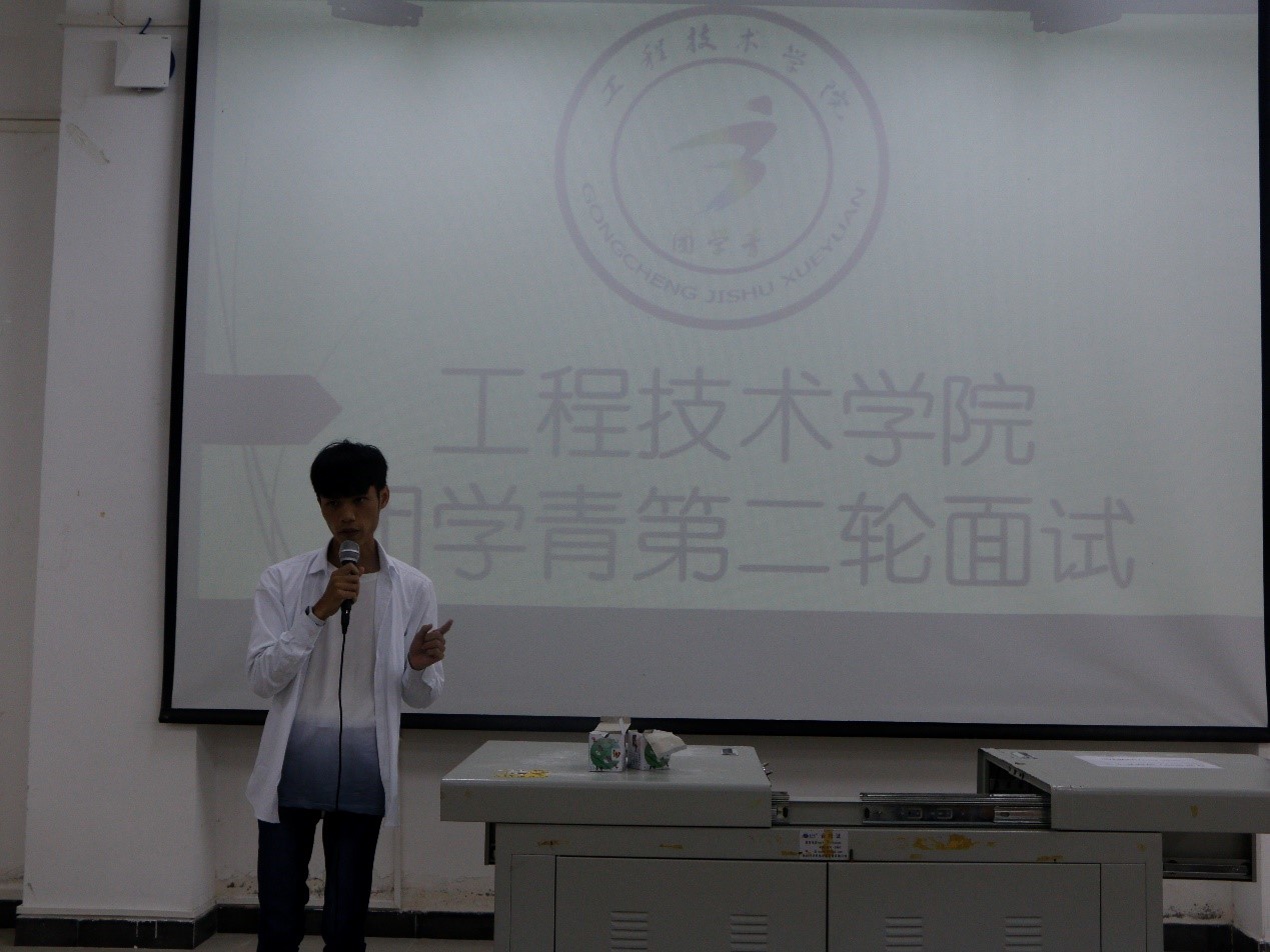 2019年10月13日(院青年媒体中心报道)讯,金秋的岁月,丰收的季节。10月13日晚上7点在教学楼2-408多媒体教室,工程技术公司2019级新生迎来了团学青招新第二轮面试大会。出席本次大会的有团学青负责人鄢兴祥老师、团学青全体干部成员和19级新生面试者。