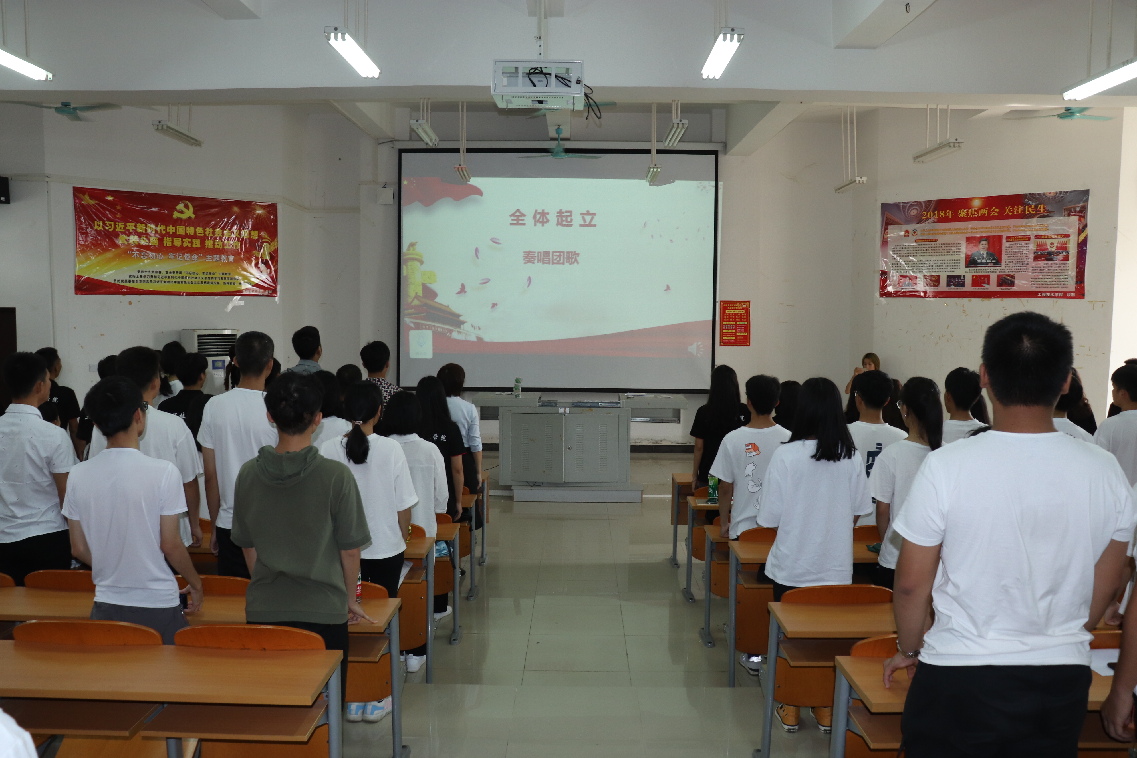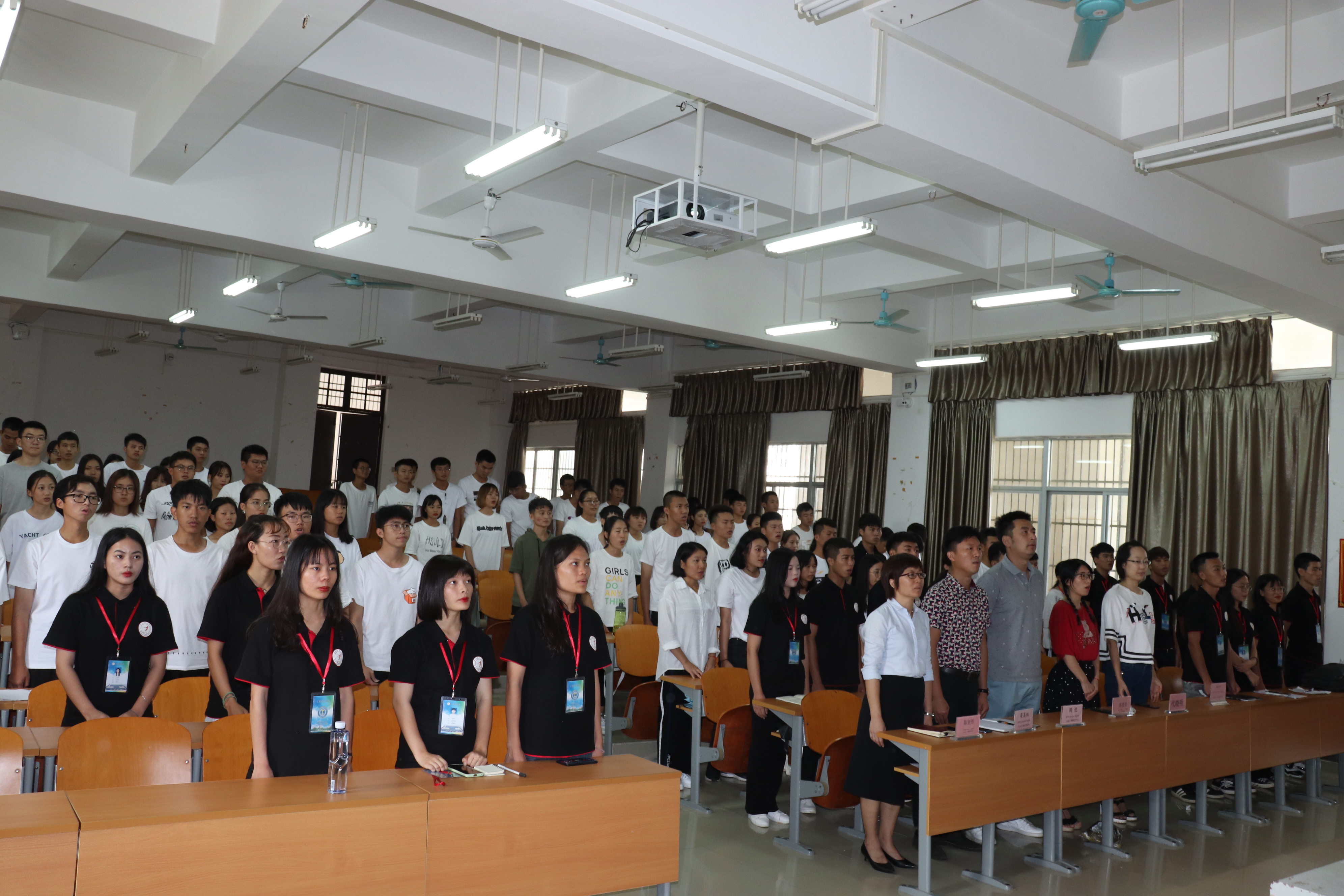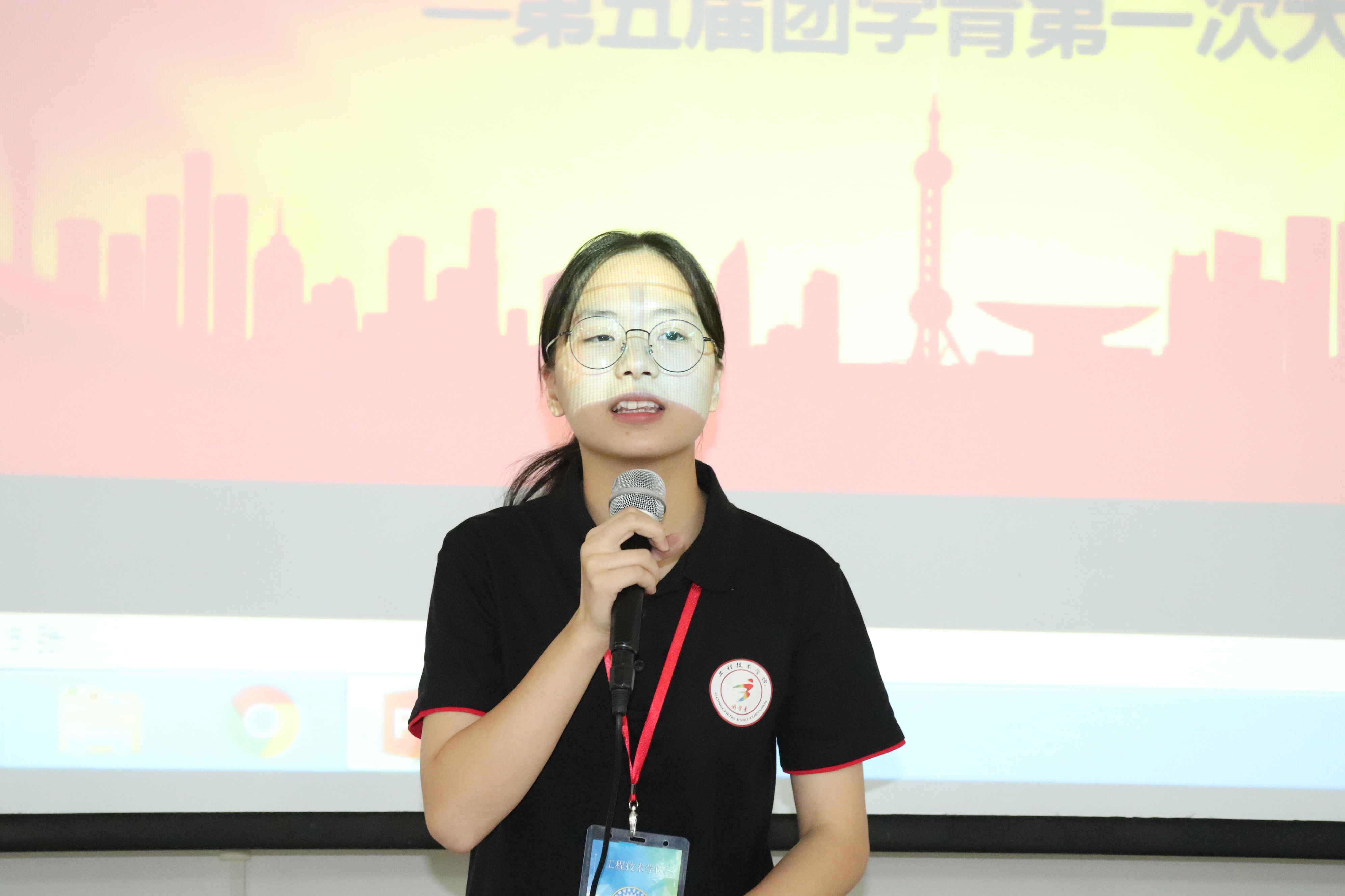本次会议由团学青办公部曾梓怡同学主持,主要流程为:全体成员起立奏唱团歌;各部门部长上台为新干事送上祝福寄语,为干事发工作牌。