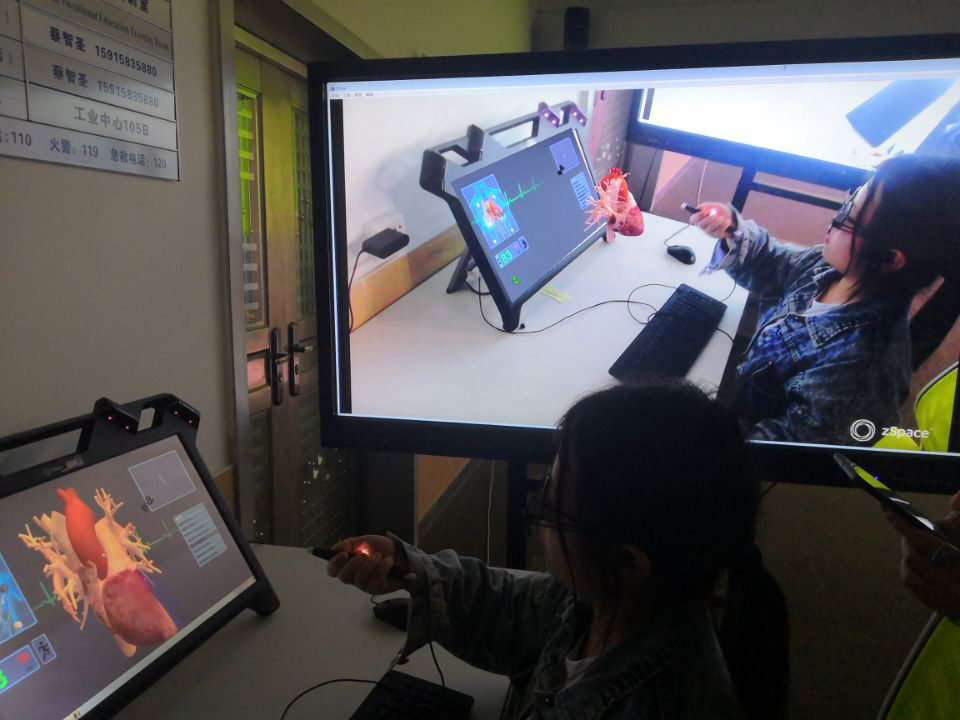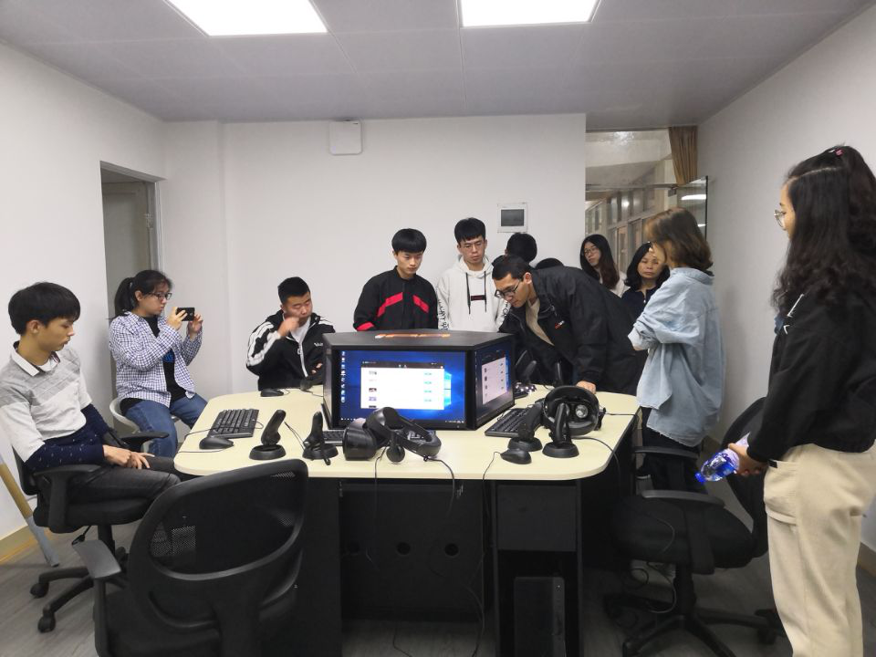 图7,该公司在校技术人员讲解VR虚拟现实实验