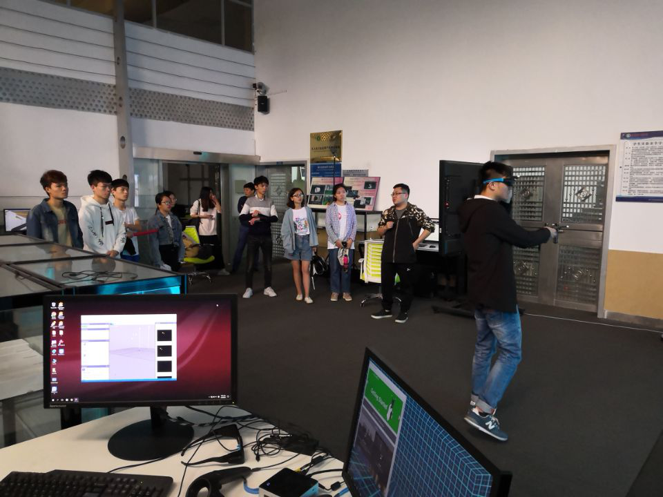 3月23日早晨,我们来到了由广州可口可口软件科技有限公司和广东技术师范大学合作成立的“广东工业实训中心”进行学习交流。在这里我们体验了AR在教学领域的优势和高效性,通过生动有趣的互动,吸引员工的学习兴趣,引导员工深入探究与学习。同时也进一步接触了VR领域的空间美学与现代硬件技术的科技碰撞。让同学们产生了极大的兴趣,也增强对VR领域的进一步了解。
