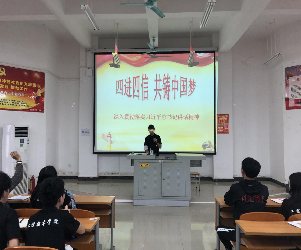 本次团课共分为三大部分,依次为:三会两制一课,四进四信和1+100团干交流会。演讲的内容可浓缩为以下几点精华:1.团课对团员的重要意义2.端正自己的心态,调整好自己的方向3.遵守规则,让规则长驻身边4.正确对待集体与个人的关系,树立集体意识。