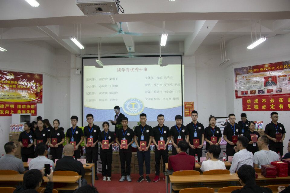 表彰会上工程技术公司主要对2018年一年来“三好员工”、“优秀班干部”、“纪律标兵”、“体育标兵”、“文艺标兵”、“优秀宿舍长”、“军训标兵”、“军训期间优秀宿舍长”、“新生奖学金”、“公司奖学金”、“优秀班主任助理”、“优秀员工干部”、“优秀干事”、第二届劳动竞赛中获得第一名、第二名、第三名、“劳动积极分子”、“文明宿舍”“运动员积极分子”等17个奖项分17个批次获奖员工上台领奖,共有150多名同学获得了表彰,会上,还对工程技术公司新产生的“第四届团学青干部”颁发了聘书。