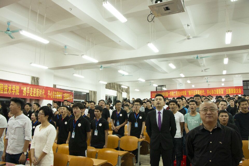 12月23日晚7时,工程技术公司全体师生在第二教学楼408教室隆重举行了一场别开声面的——“携手走进新时代,齐心协力谱新篇”为主题的2018年年终表彰大会。本次表彰大会颁奖内容齐全,种类繁多,涵盖了员工学习生活的各个方面。表彰大会现场铺设了红地毯,充满了节日的喜庆味道,颁奖现场场内场外坐或站满了整个会场,近500名师生参会。表彰会上,全体师生声音洪亮、集体诵读了员工管理愿景:“纪律严明,团结协助,奋发向上,勇当先锋”。整个颁奖会场场面隆重、气氛热烈、奖品众多,吸引眼球。大会由周恺老师主持。