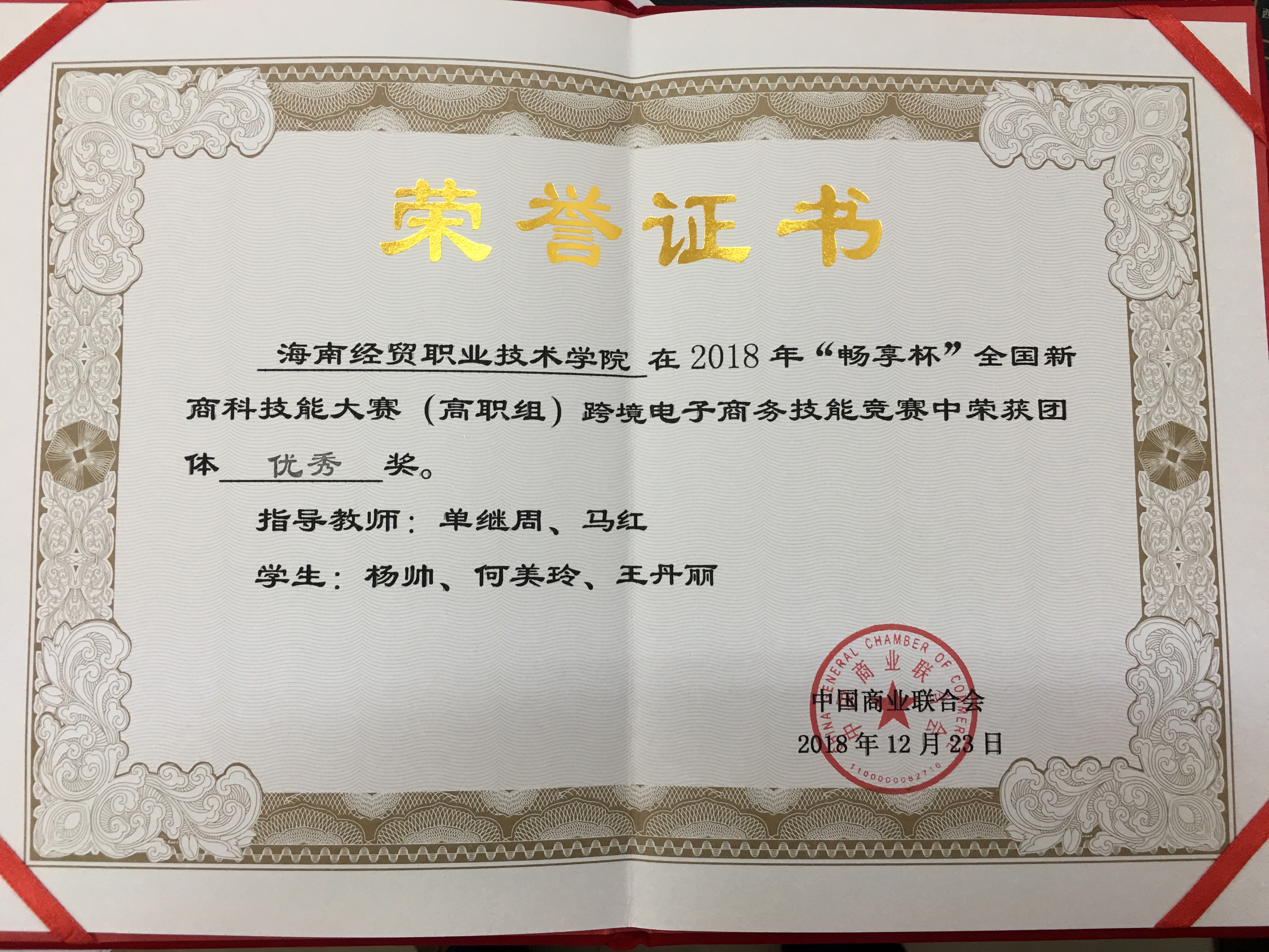 喜讯:工程技术公司代表队在2018年“畅享杯”全国新商科技能大赛(高职组)跨境电子商务技能竞赛全国总决赛中荣获团体优秀奖