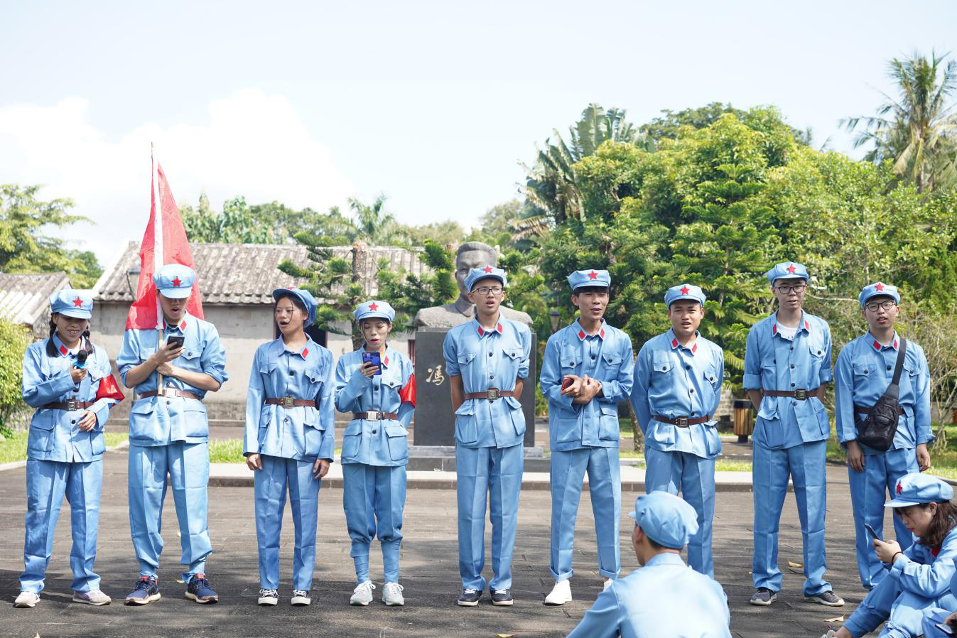 图5:在冯白驹将军塑像前举行庄严的宣誓仪式