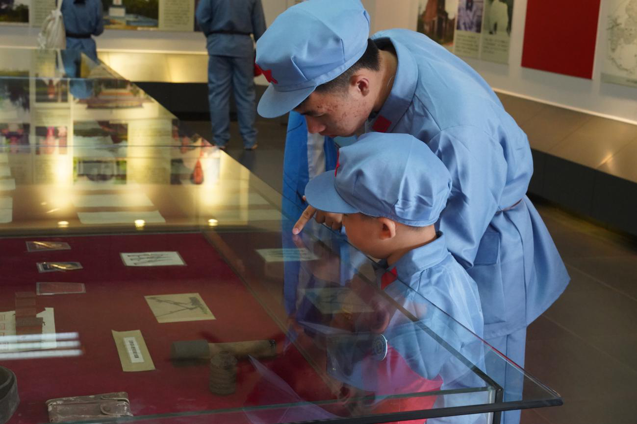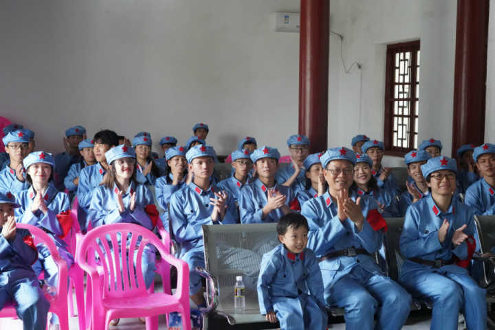 图1:穿戴统一红军服、红军帽、红袖章