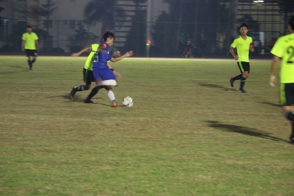 随着裁判的一声哨响,两队开始激烈的拼抢。在比赛进行到白热化状态时,公司球员虽大汗淋漓,少数球员身体有少许擦伤,但依然咬牙坚持继续进行比赛。公司球员的默契配合以及坚持不懈的精神,使同学们领略了足球风采的同时,更读懂了默契是彼此间的信任,而坚持则是一种人格信仰。