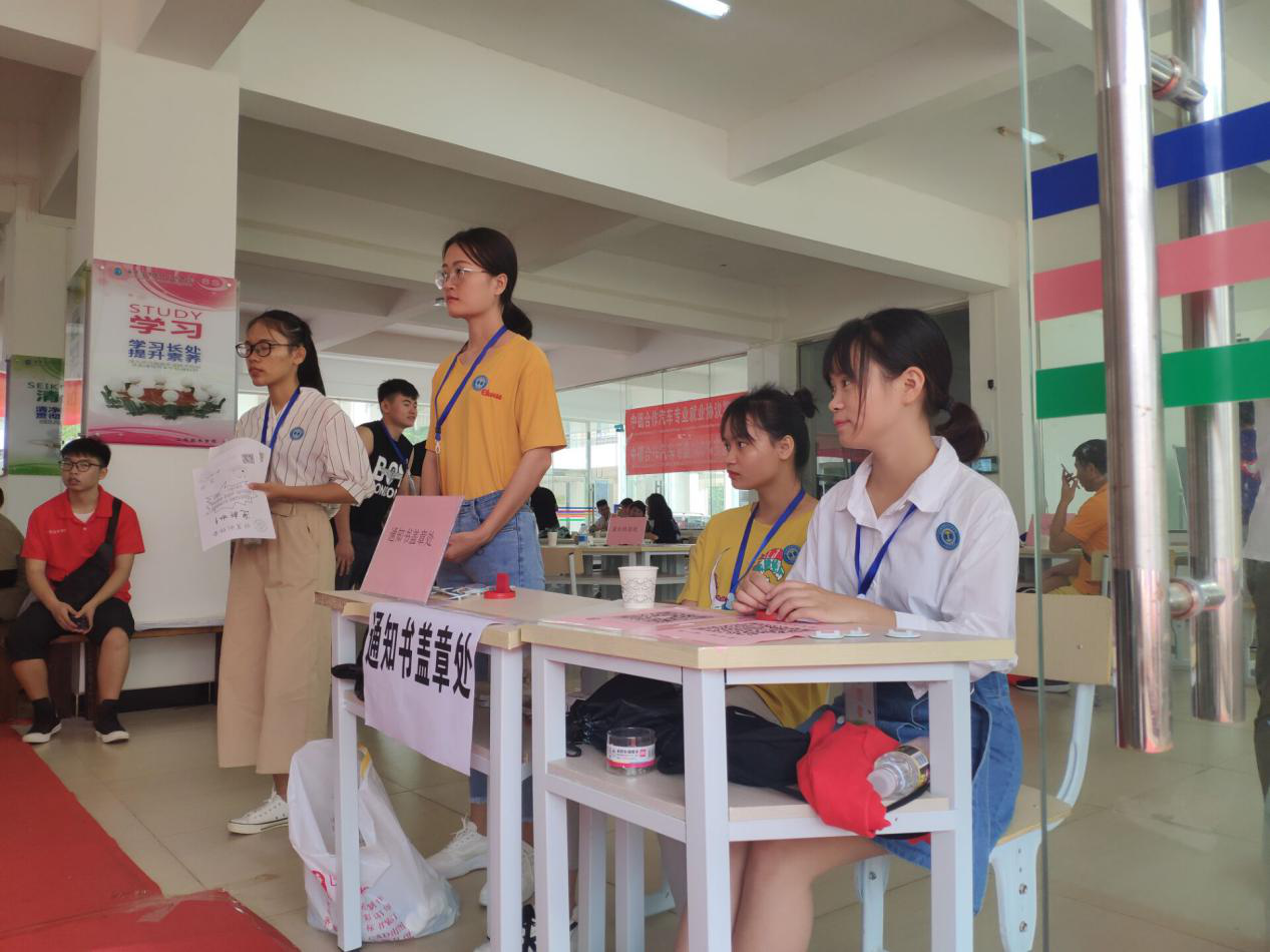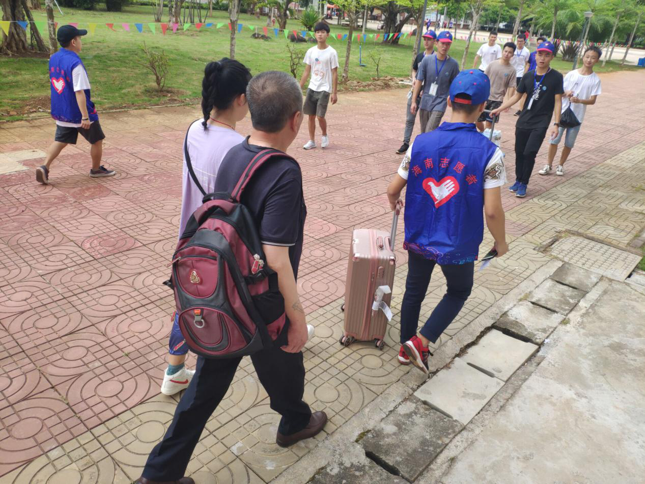 在迎新现场,员工会和代班及志愿者们不停地穿梭在校道上,热情细心地引导新生完成报到流程,帮助新生搬运行李,并积极介绍校园环境和老员工活经验。