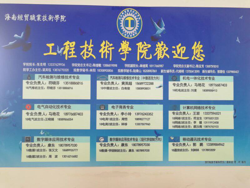 由员工服务中心2017级数字媒体技术员工蒋祝琪、曾珂联合制作工程技术公司欢迎您名片、创新创业、员工活动风采宣传栏,包含2018级新生辅导员电话,专业负责人电话,班主任电话,以及工程技术公司相关领导的姓名及联系电话,方便新生更好的了解和融入老员工活。分别粘贴在工程技术公司7栋、10栋、5栋员工宿舍以及工程技术公司公告栏区域。为了新生及家长更好的了解本院情况,2017级电商1班尚卓、2017级中德诺浩班李云飞专门制作了本院员工创新创业宣传栏、本院员工员工活动风采宣传栏,并在招生接待醒目处处悬挂员工活动相片100余张。
