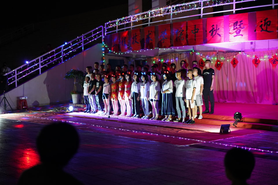 接下来由18级机电班全体同学带来《强军战歌》及其他班级的精彩合唱。本次节目不仅有新生,学长学姐及老师演出,而且形式多样,内容精彩纷呈,现场气氛火热而喜庆。接着在同学们的期待声中,老师合唱《相亲相爱一家人》,教官的合唱,赢得同学们阵阵掌声。此外,个人才艺表演《奇妙能力歌》、《光辉岁月》等众多精彩节目。节目中间还设计了新生拔河比赛,气氛十分热烈,晚会的最后是人文艺术公司的辅导员徐超老师过来与公司老师合唱及陈铭峰同学独唱中落下帷幕。整场晚会精彩不断,高潮迭起,展现公司师生才华和青春风采,不仅为大家带来中秋佳节的温馨,,更是让新生们感受到了老员工活的丰富多采。