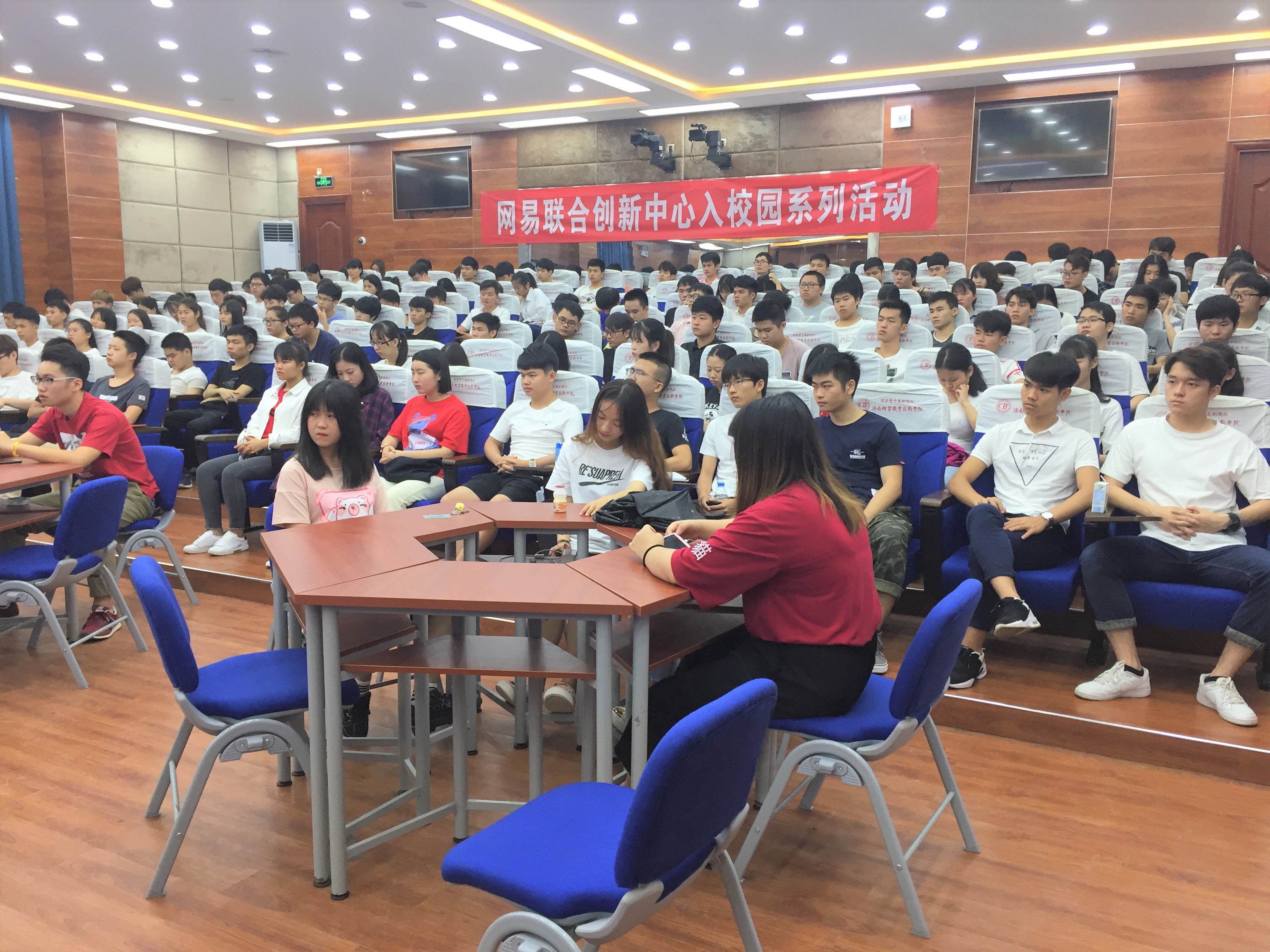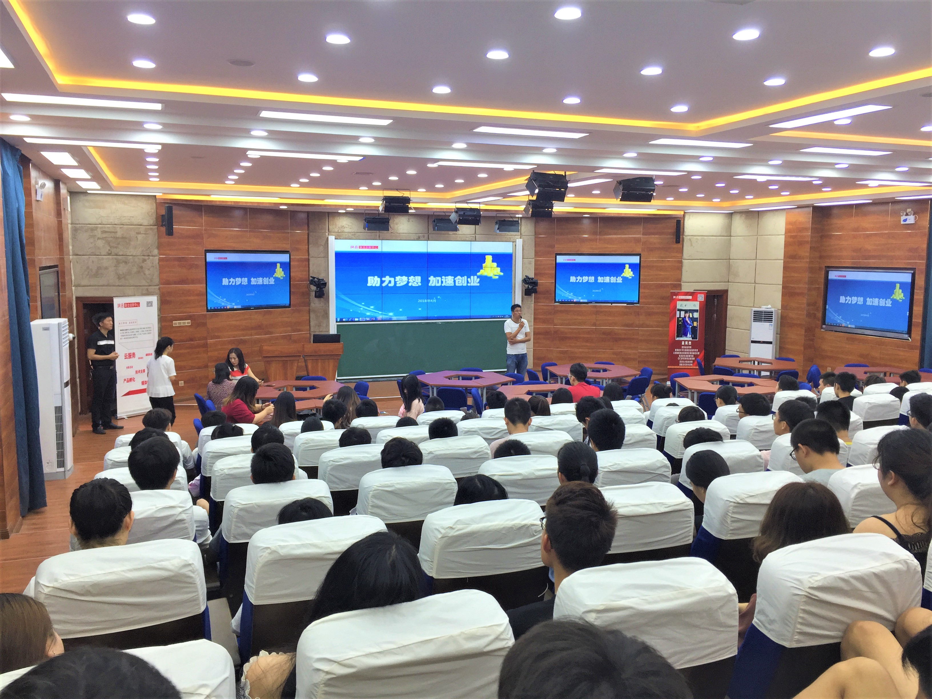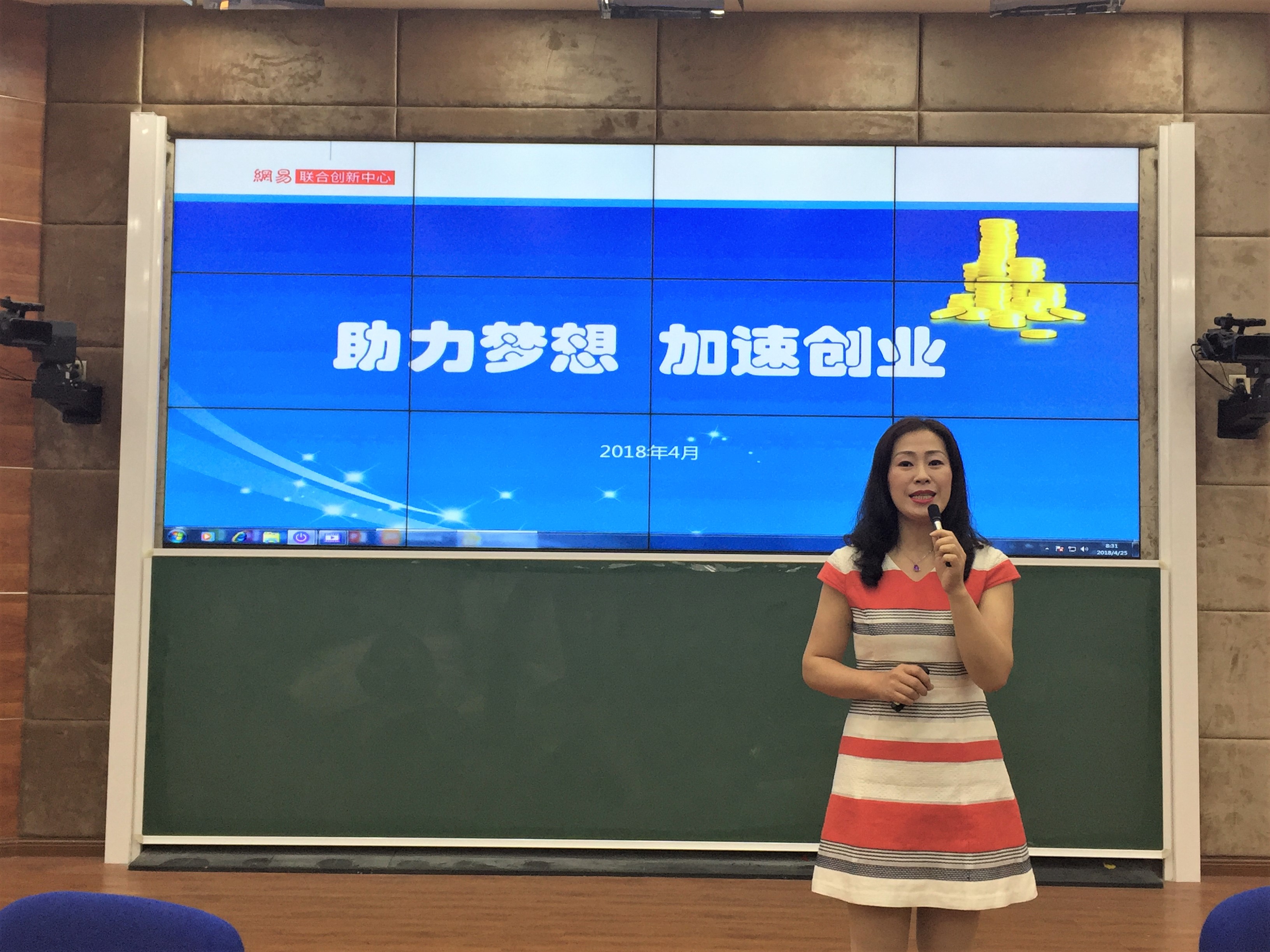 4月25日讯(青年媒体中心报道)为进一步提高公司员工的创新创业意识与能力,助力公司老员工完成创业梦想,公司于4月25日上午8时在2栋215教室举办了“助力梦想 加速创业”创新创业专题讲座。本次讲座由网易联合创新中心资深创业导师孟宪杰主讲,公司办公室主任梁其钰、辅导员徐超与公司电商、网络、通信专业共120余名员工聆听了讲座。