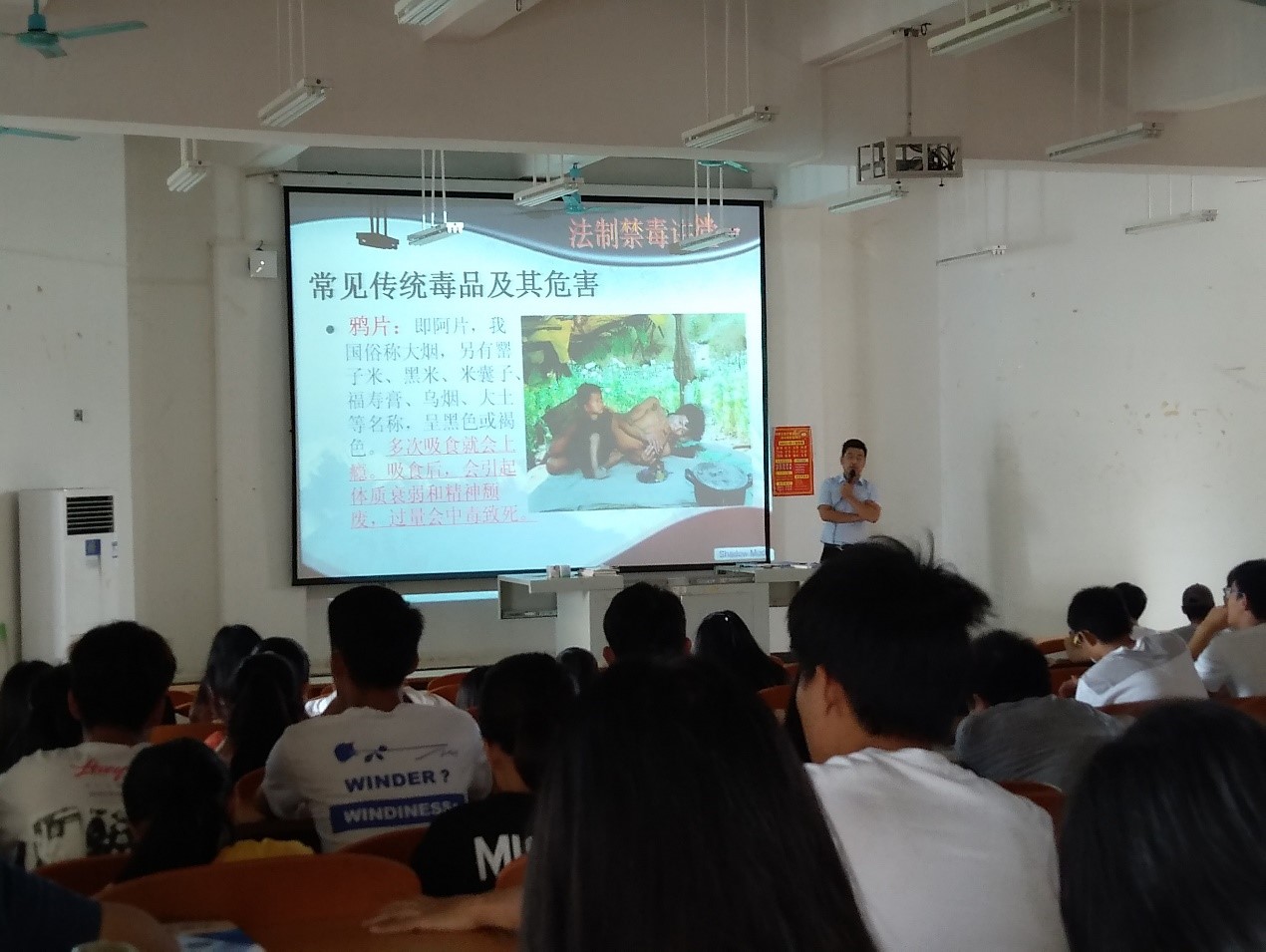 在课上,周恺老师为同学们讲解了毒品的定义,我国的禁毒历史,详细讲解了几个吸毒案例,在法律上对于吸毒贩毒的量刑,而后为同学们详细介绍了各种毒品的特征,作用,如冰毒,摇头丸,大麻等等,同时对吸毒的危害做出了更为细致的讲解,让同学们能够从心底,从精神上便开始远离毒品,杜绝毒品在同学们身边的出现。