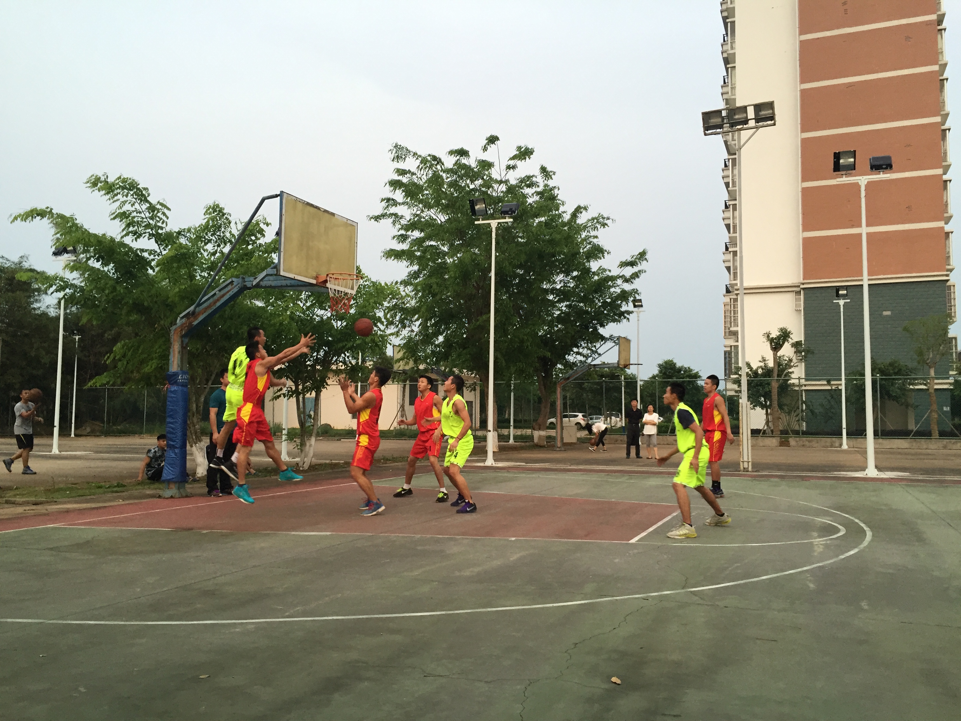 哨声一响起,双方队员握手后,比赛正式开始,在赛场上队员们积极投入、全力以赴。那青春的身影用灵巧与速度、敏捷与迅猛、沉稳的步伐尽情演绎着篮球赛的速度与激。情场下的工程的拉拉队为他们呐喊助威!经过紧张激烈的角逐,公司男女队比赛得分都不及人文艺术公司。