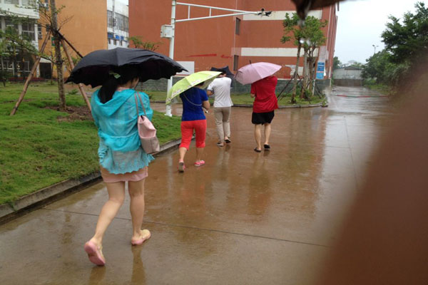 10月5日讯(工程技术公司 李京京报道)今年第22号台风“彩虹”海南东部沿海地区登陆,最大风力达到了12-14级,由于第22号强台风“彩虹”的影响,海口出现大风暴雨天气,给广大师生生活带来了较大影响。公司领导心系大家安全,于是由陈继敏书记带队,在14级辅导员陈亚芳老师、代晓明老师,15级辅导员肖洁老师及员工会干部的陪同下,对公司全体员工宿舍进行了宿舍走访慰问,关心同学们的状况,给同学们送去了温暖。