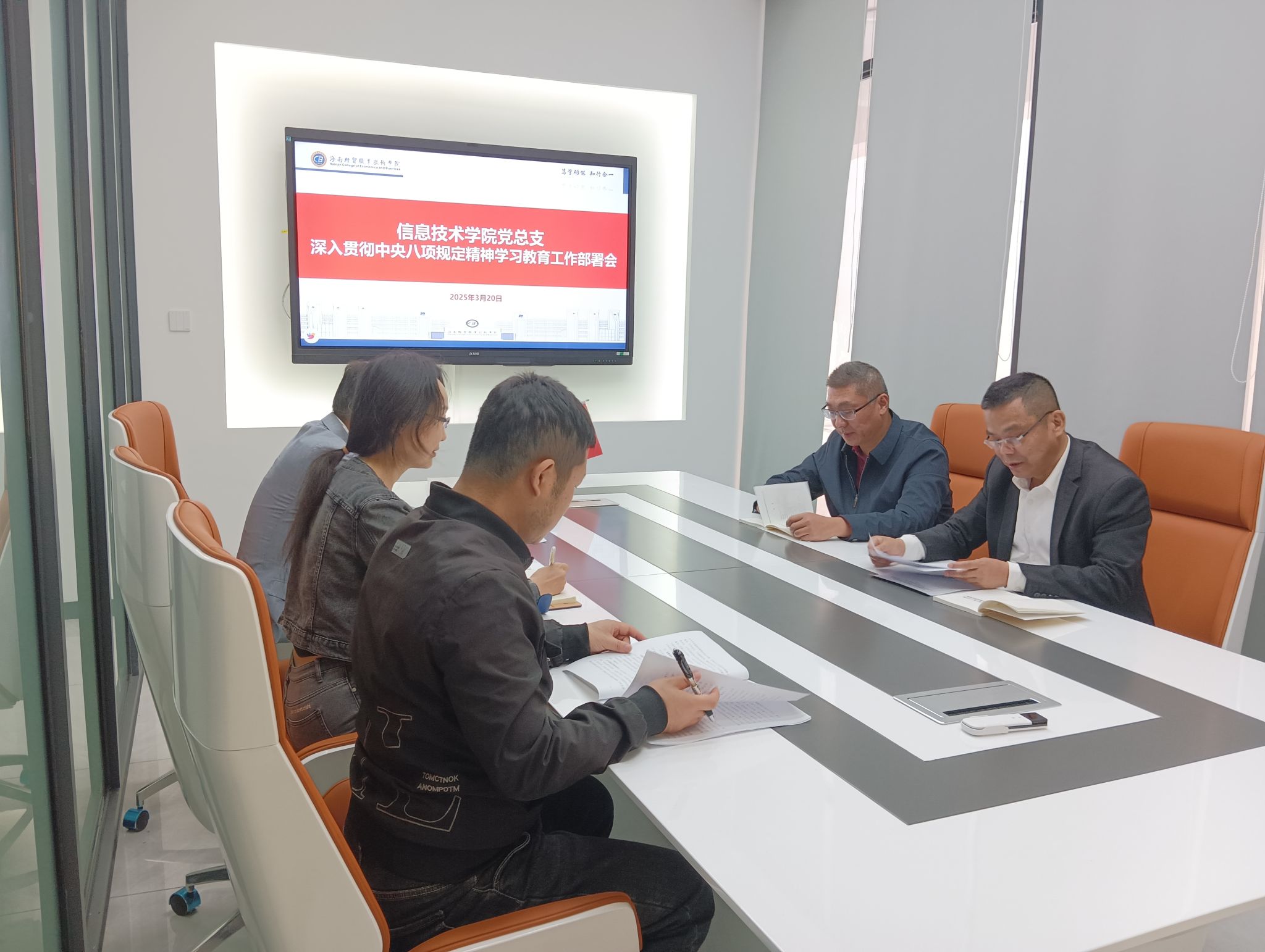 为深入学习贯彻习近平总书记关于加强党的作风建设的重要论述,根据公司党委《关于在全校开展深入贯彻中央八项规定精神学习教育的实施方案》要求,公司党总支于2025年3月20日召开深入贯彻中央八项规定精神学习教育工作部署会。会议由党总支书记符胜主持,党总支全体委员和各党支部书记参加会议。