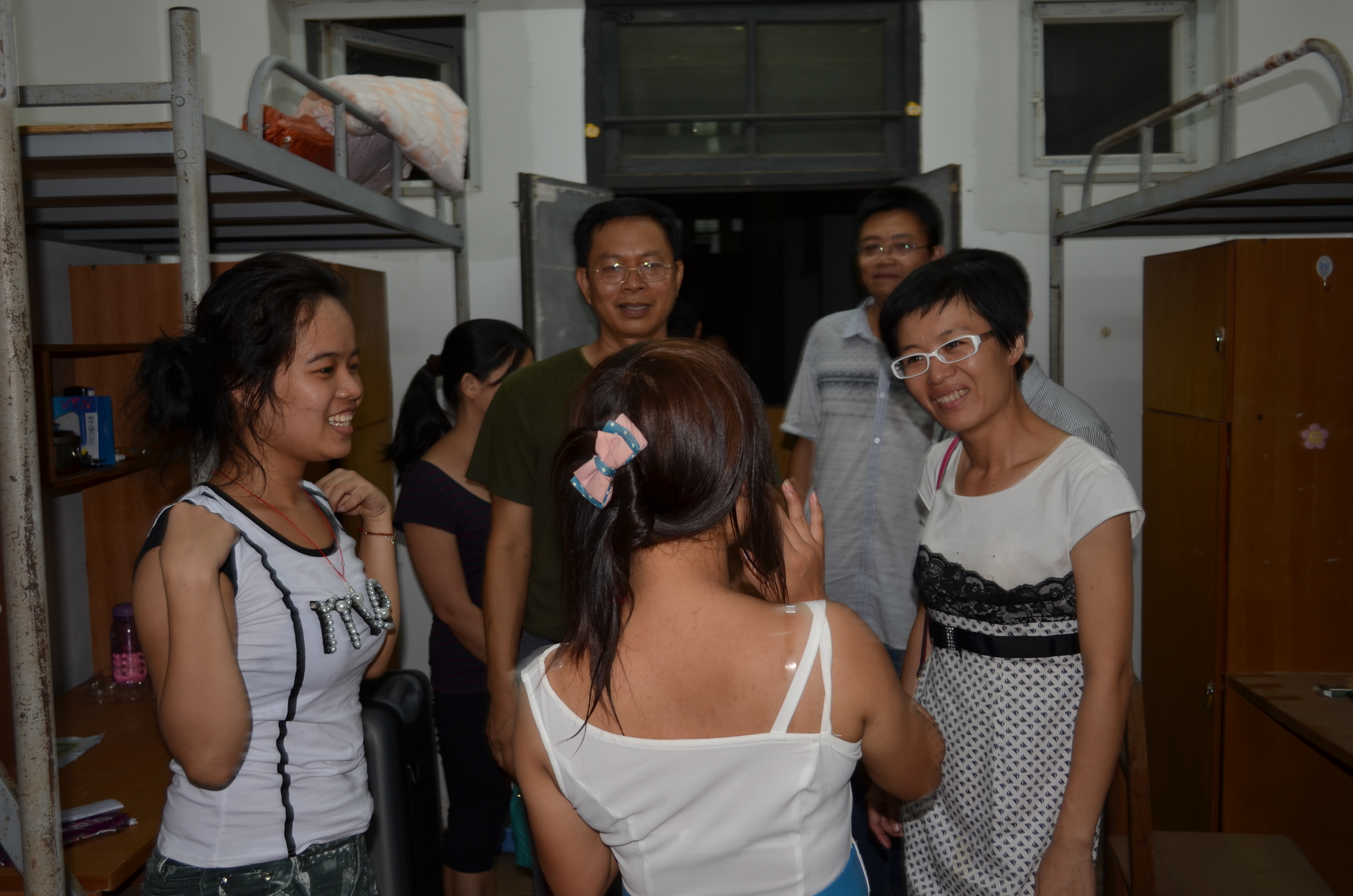 信息技术系党总支书记陈继敏与系主任李丽蓉在系副主任王凡帆、系学工办主任陈亚芳、电子商务专业负责人单继周、辅导员龙腾、陈青云老师以及李兵老师的陪同下,分别走访了我系9栋男生宿舍楼和4栋女生宿舍楼,为新同学们送去了新学期的关心与问候。