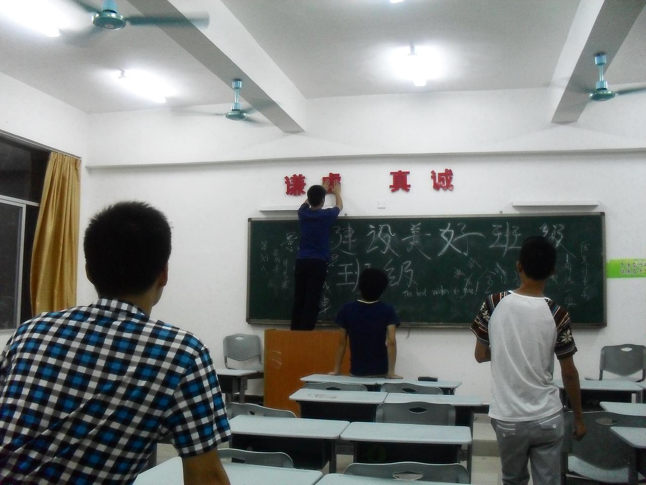 我系于5月下旬-6月中旬开展为期半个月的员工环境创建活动,每个班级晚自习室,宿舍区域等场地进行了布置,每间教室不仅贴有班级的各类激励标语,人生座右铭等,还有名人的成功事迹,如马云,马化腾等,更有名人语录。例如“为学之道,莫先于穷理;穷理之要,必先于读书——宋(朱熹)”,来鼓励我们奋发图强。建设文化班级、文明宿舍,再一次凝聚了各班整体的力量,而所营造的氛围则用来提醒我们正是“恰同学少年,风华正茂”。