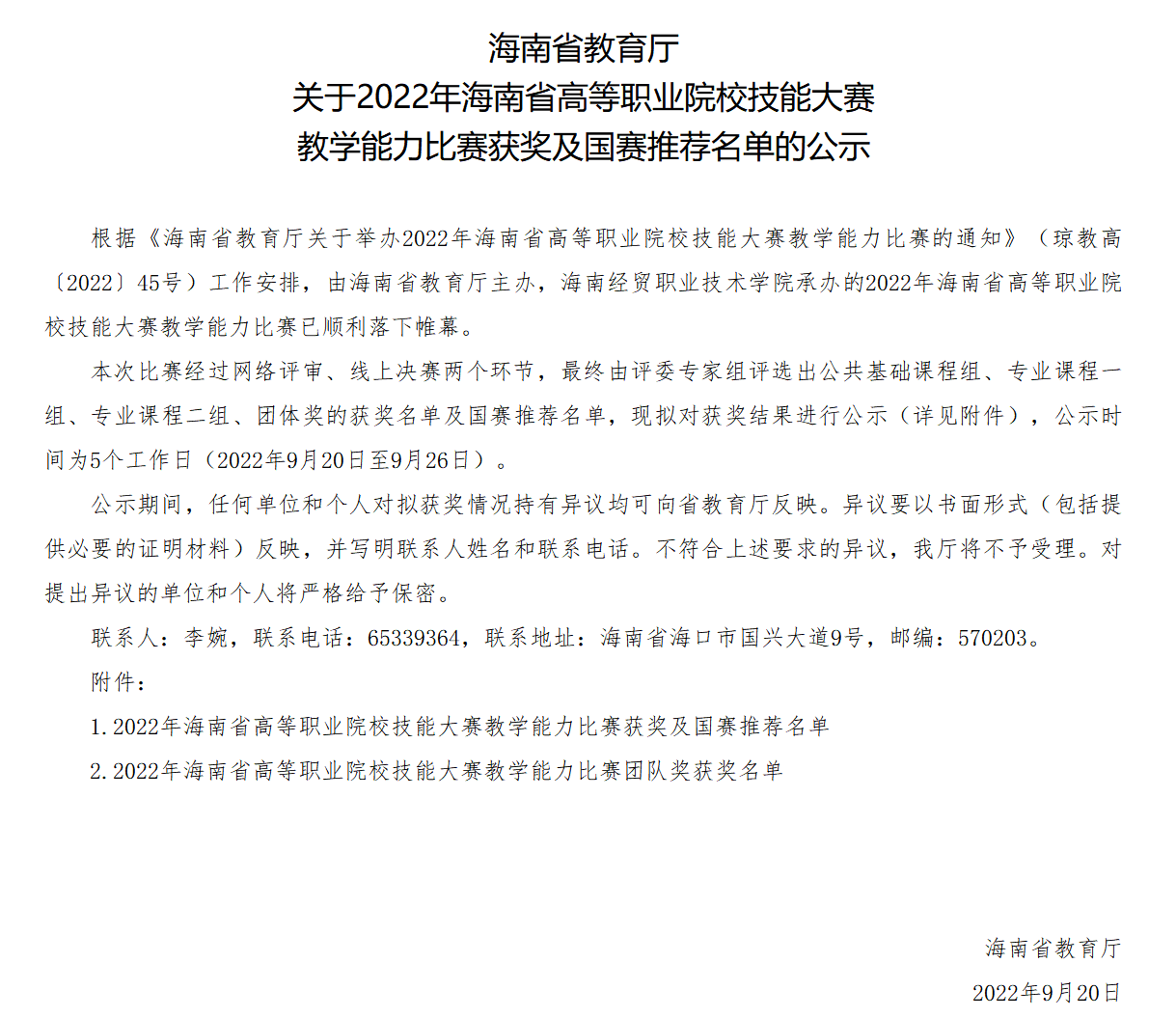 9月15日,2022年海南省高等职业院校技能大赛教学能力比赛决赛在BEVITOR伟德圆满举办。来自全省11所高职院校的41个团队共155名教师聚首竞技。本次比赛内容涉及教学实施报告、教案设计、人才培养方案、课程标准和教学视频等多项内容,涉及方面广,研究程度深。经过紧张激烈的角逐,由公司教师董阁、林珍、康东、郭蓉佳组成的教学团队精心打磨的作品《“中华传统美德”公益动画短片制作》获得专业课程一组一等奖并同时被推荐参加国赛。